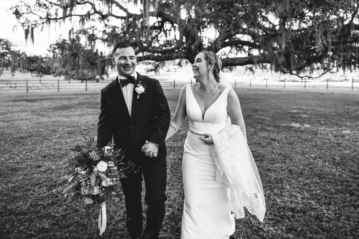 I met Allison and Logan back in January 2020 during their engagement session which now seems like a lifetime ago. I loved working with them because they had so much energy and were total naturals during their session which as you know by now, is every photographers dream. I prayed that I would get to photograph their wedding day and as luck would have it, they seemed to like me too so it was a match! I was pumped to shoot their wedding in November 2020 but within days of their nuptials coming up, COVID decided to throw a wrench in their plans and the wedding was postponed until 2021. As devastating as this was during the time, I think it really worked out for the best. Allison and Logan still chose to have their full catholic ceremony and become legally married before their big wedding the following year. They changed venues so this Waller Ranch wedding day was now where the party was at! They were still able to have their religious ceremony with their immediate family which I know what so important to them, but then they also got to have a more laid back ceremony and share vows in front of all their friends and family on their Waller Ranch wedding day. Honestly best of both worlds! The day was filled with my favorite first-look to date, a ceremony under a big oak tree, some cows, a tractor, and plenty of dancing to go around. The night ended with a faux sparkler exit and for once I didn’t fear my hear getting caught on fire! Congrats Mr. & Mrs. Meriwether! This day was worth the wait!