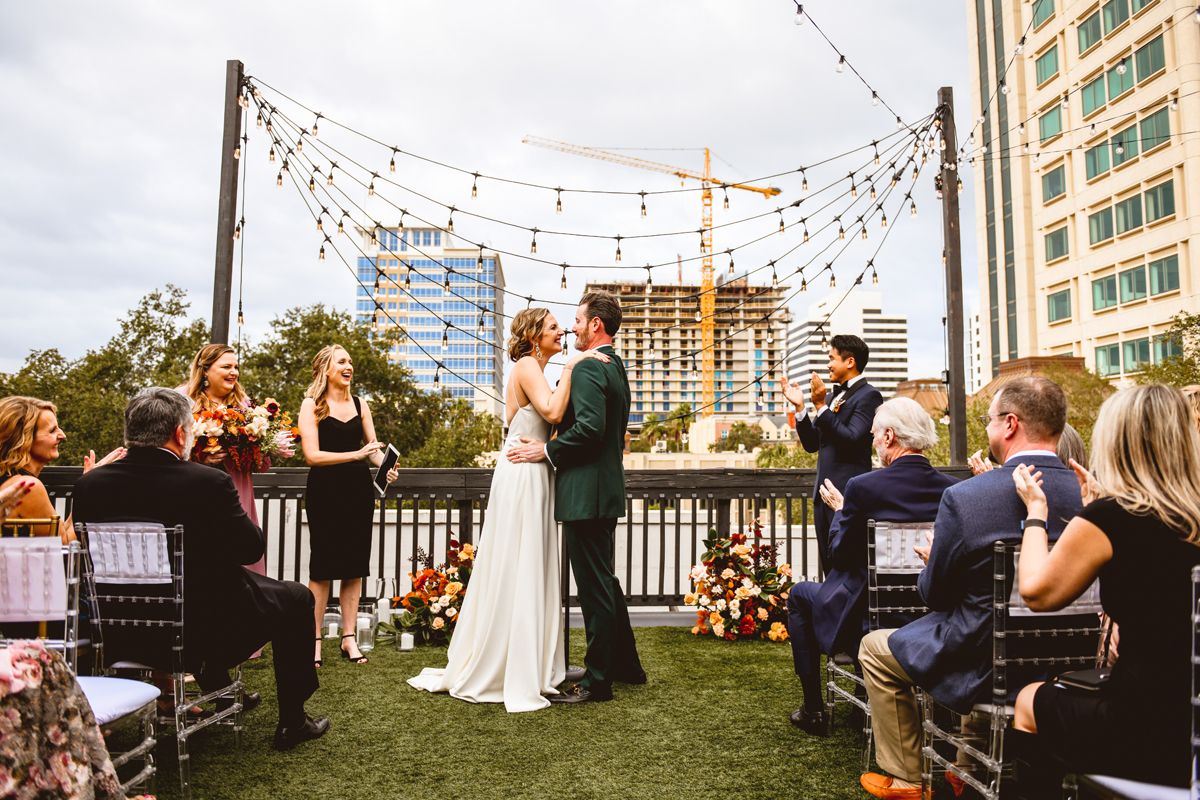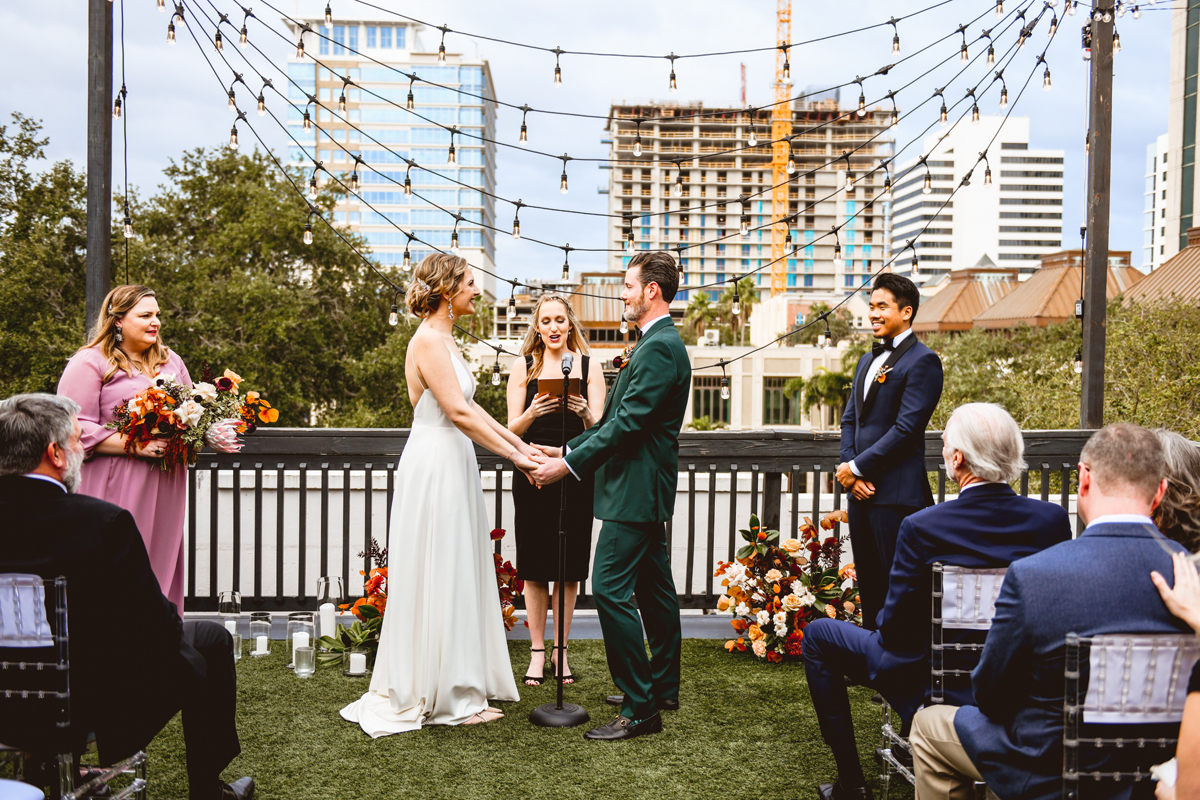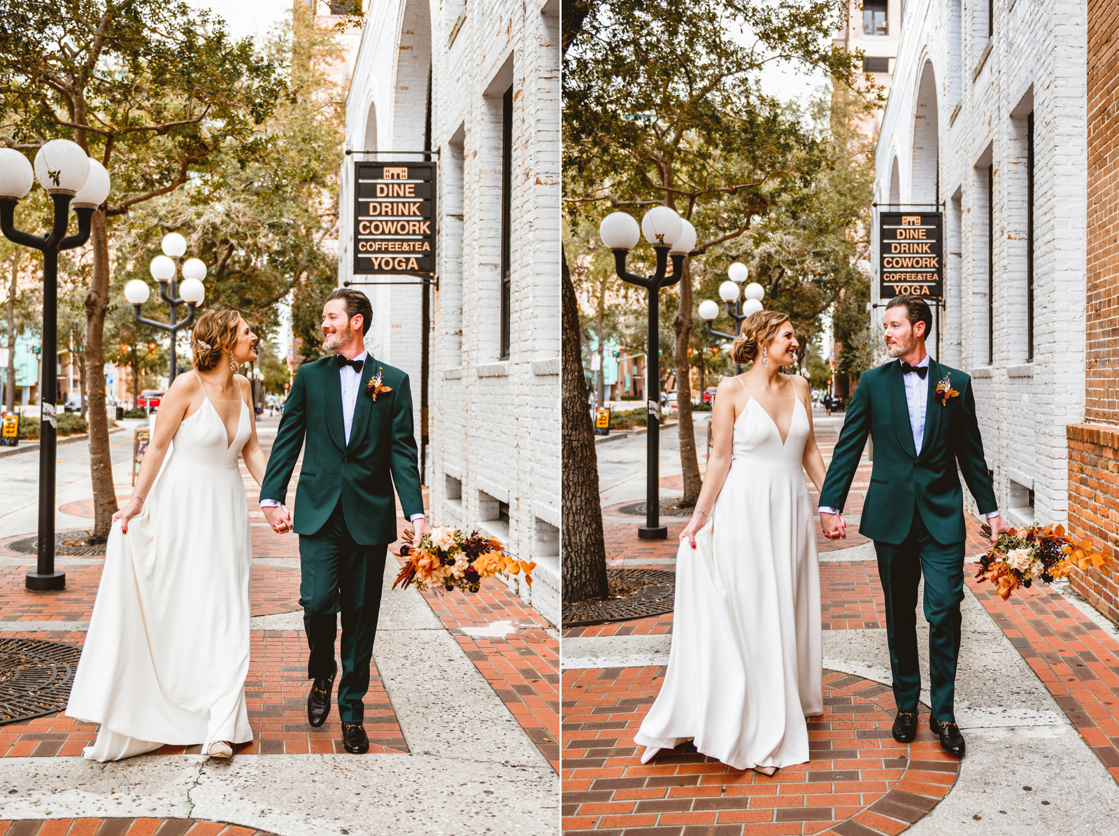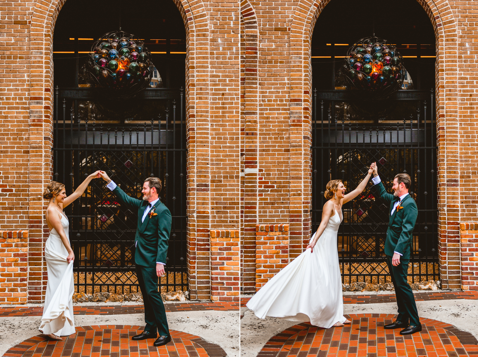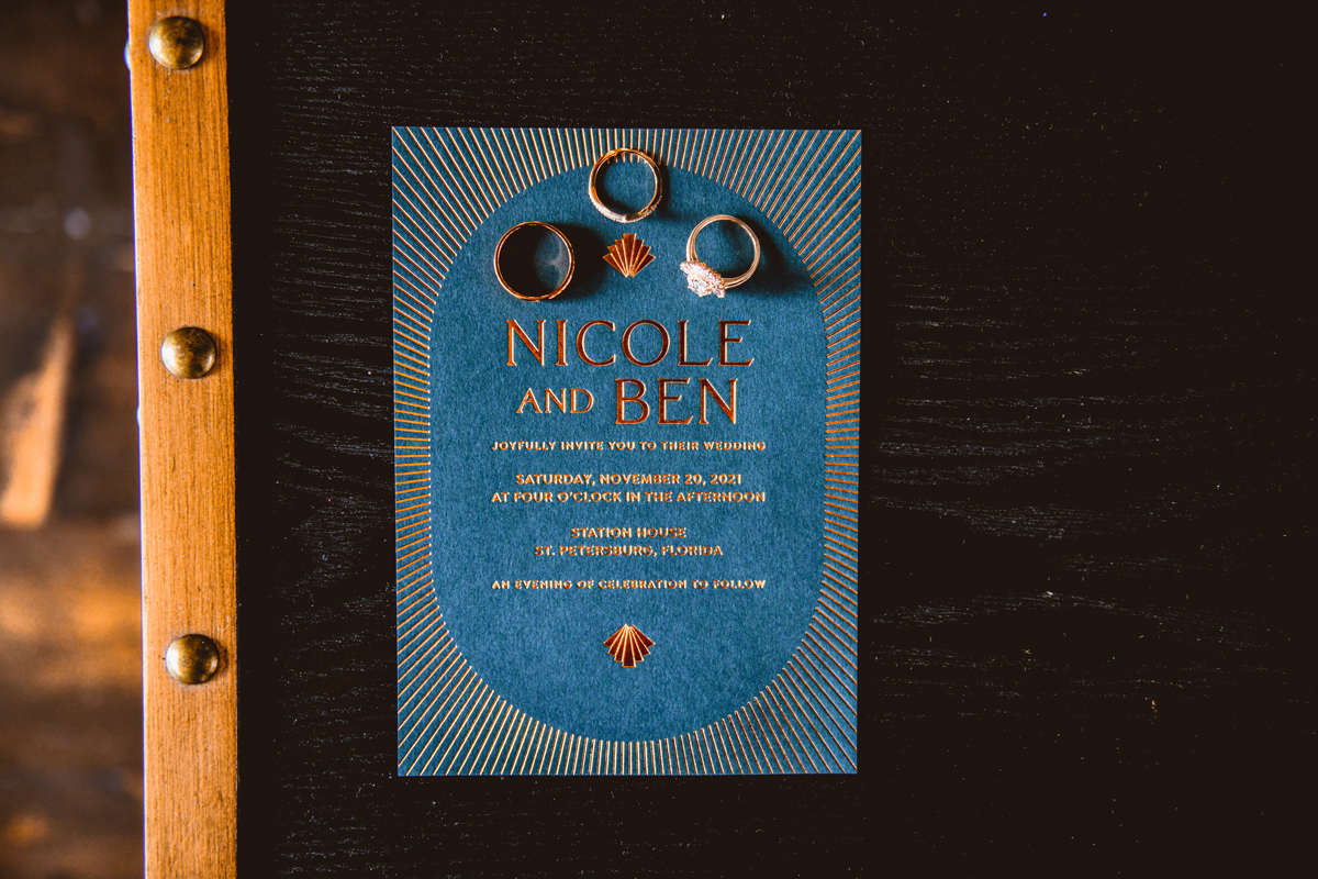 Humans like Nicole and Ben are why I love my job. Their wedding day at Station House St. Pete was solely focused on them celebrating their marriage with their closest family and friends. Not all the stereotypical elements that people feel they need to include in their wedding day. Not that that’s a bad thing, but there is something to be said for the simplicity of a wedding thrown exactly the way you want it to be. You create your own roadmap and that’s exactly was Mr. & Mrs. Judd did. No frills, all magic as I like to say. Bonus points that they both have impeccable style. Below you’ll see Ben’s immaculate green suit and don’t even get me started on Nicole’s looks. She slayed not only 1, but 2 outfits and they could not have been more stunning. The first dress was simple, clean, and elegant and the second dress knocked everyones socks off. A gown covered in sequins that sparkled all night. If you look up party dress in the dictionary, you’ll find Nicole’s dress right next to it. The attention to detail was front and center and Station House St. Pete was the perfect venue to really accentuate the vision Nicole and Ben had for their wedding day. From their rings, to their custom invitations, Ben’s cufflinks with their fur-babies on them, and everything in between, no detail was overlooked. The beginning of the day started with their portraits and the end of the day was spent singing and dancing the night away under the stars with all of their friends and family and I loved capturing every second! Nicole and Ben, thank you guys for just being so, you. It was so refreshing. Cheers to forever!