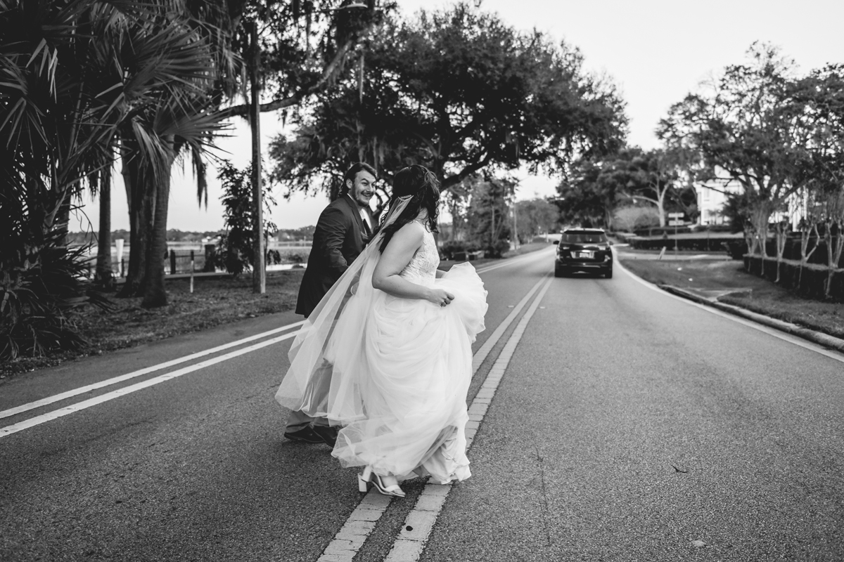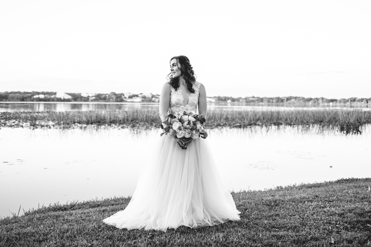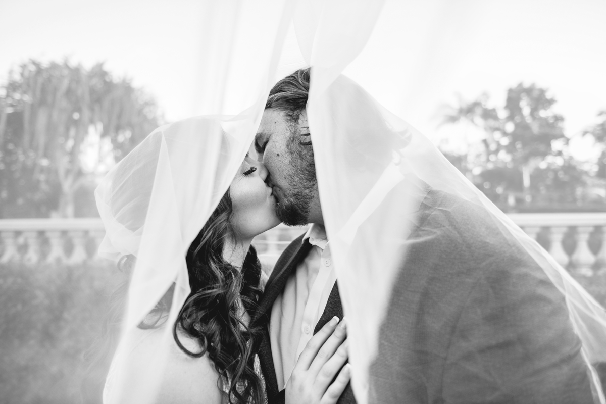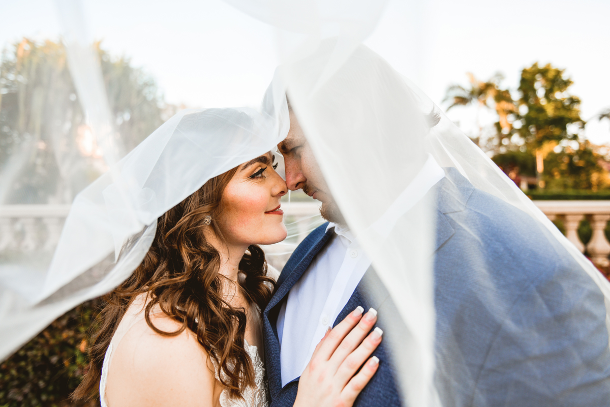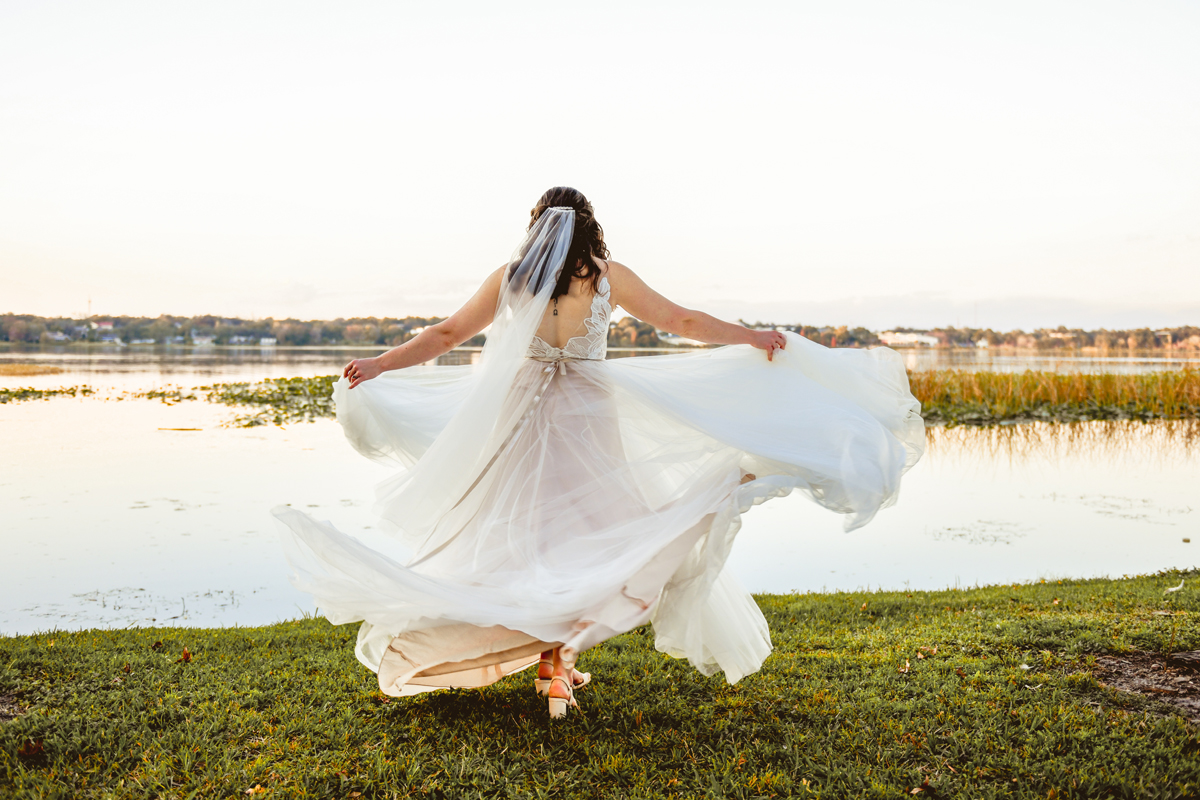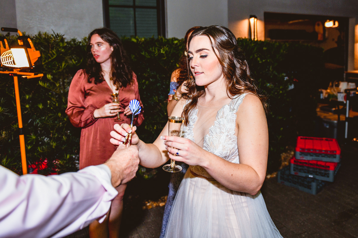 A day a year and a half in the making and we finally made it! The backstory: Rhiannan and Kyle were planning their wedding day for 2020 and maybe you can guess what happens next… oh yeah COVID. Since Rhiannan’s family isn’t local to Florida they wouldn’t be able to make it Florida for their original wedding date. So instead of postponing the wedding or celebrating without Rhiannan’s side of the family, they chose to split their wedding day into two parts! The first part was an elopement in Vero Beach with just Rhiannan, Kyle, the officiant, me, and the ocean. Even though it might have been the windiest day of the year, it was still the perfect day capturing Rhiannan and Kyle become Mr. & Mrs. Hulbert. Fast forward to 2021, it was time to throw the celebration part of their wedding day which brings us to round two! I met up with Rhiannan and Kyle at Hollis Garden for their family and wedding portraits and I got to put on my Lakeland wedding photographer shoes. Even though we got locked outside of the garden we still made the best of it by taking portraits around the area which was still perfectly picturesque. Once we finished, we headed back to Kyle’s family home where the party would be taking place. Rhiannan and Kyle did such an amazing job transforming the house into an ideal indoor/outdoor space for a wedding. Champagne, a table filled with food and desserts galore were lined with greenery centerpieces and photos from their elopement the year before. The outside space featured a bar, photo booth, dance floor, yard games, beer pong, blackjack and roulette! Which were run by professional dealers and was a big hit throughout the night. I think one of my favorite details was the guest “book”. Rhiannan and Kyle set up a huge canvas with paint-filled balloons for guests to throw darts at which created it’s own unique abstract art piece once all the balloons were popped. Such a fun idea and now they have a new art piece for the house that all of their friends and family helped them make. Overall this day was perfect for this Lakeland wedding photographer and I’m so happy I got to capture round two for Mr. & Mrs. Hulbert!