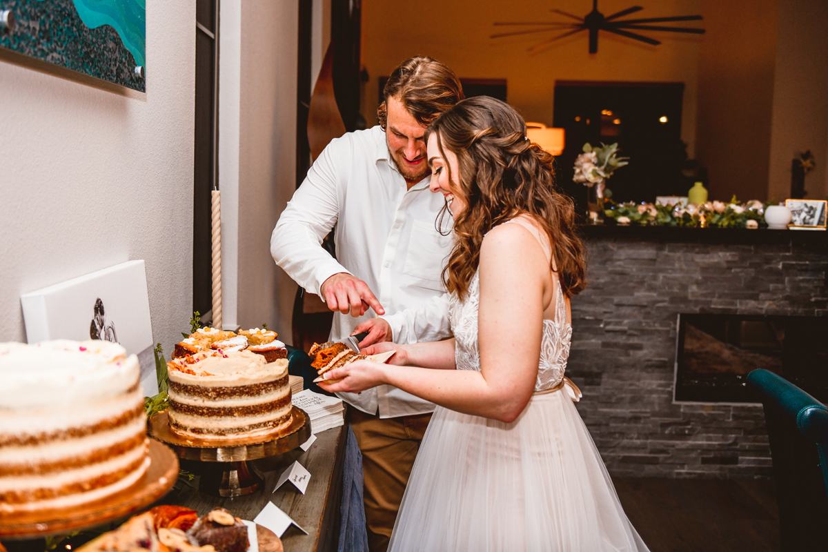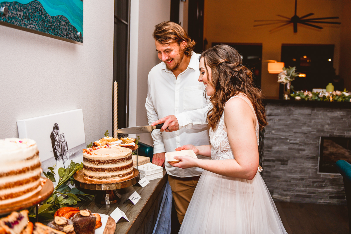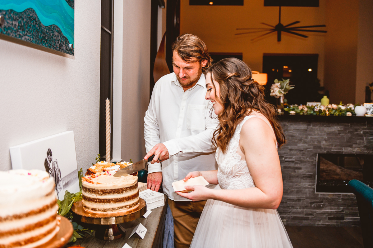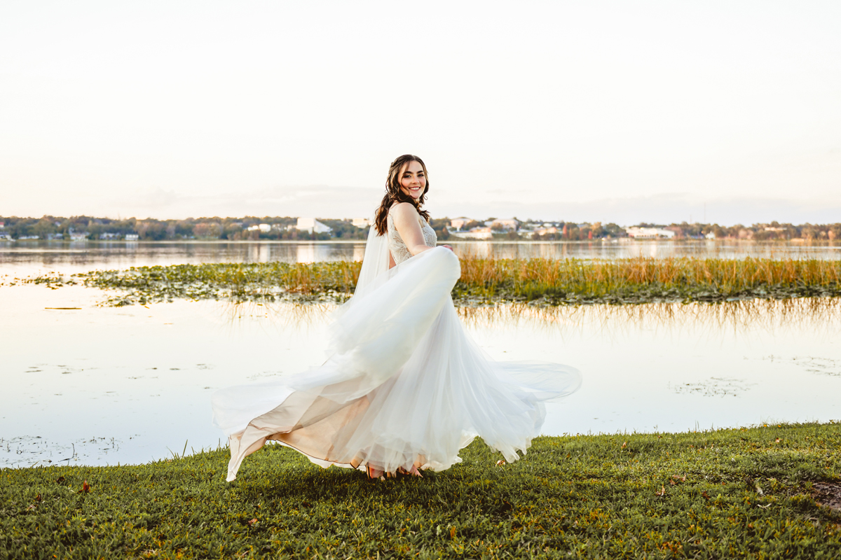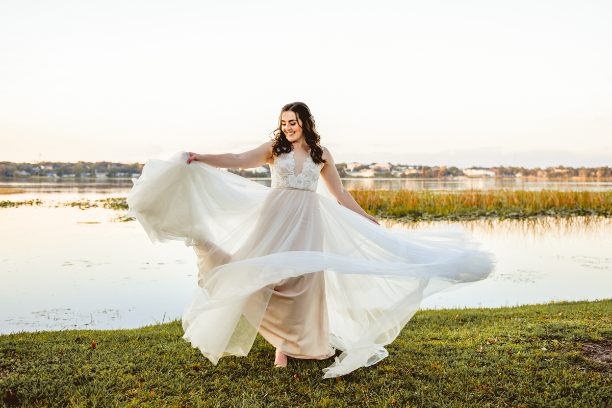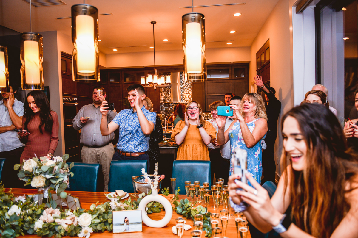 A day a year and a half in the making and we finally made it! The backstory: Rhiannan and Kyle were planning their wedding day for 2020 and maybe you can guess what happens next… oh yeah COVID. Since Rhiannan’s family isn’t local to Florida they wouldn’t be able to make it Florida for their original wedding date. So instead of postponing the wedding or celebrating without Rhiannan’s side of the family, they chose to split their wedding day into two parts! The first part was an elopement in Vero Beach with just Rhiannan, Kyle, the officiant, me, and the ocean. Even though it might have been the windiest day of the year, it was still the perfect day capturing Rhiannan and Kyle become Mr. & Mrs. Hulbert. Fast forward to 2021, it was time to throw the celebration part of their wedding day which brings us to round two! I met up with Rhiannan and Kyle at Hollis Garden for their family and wedding portraits and I got to put on my Lakeland wedding photographer shoes. Even though we got locked outside of the garden we still made the best of it by taking portraits around the area which was still perfectly picturesque. Once we finished, we headed back to Kyle’s family home where the party would be taking place. Rhiannan and Kyle did such an amazing job transforming the house into an ideal indoor/outdoor space for a wedding. Champagne, a table filled with food and desserts galore were lined with greenery centerpieces and photos from their elopement the year before. The outside space featured a bar, photo booth, dance floor, yard games, beer pong, blackjack and roulette! Which were run by professional dealers and was a big hit throughout the night. I think one of my favorite details was the guest “book”. Rhiannan and Kyle set up a huge canvas with paint-filled balloons for guests to throw darts at which created it’s own unique abstract art piece once all the balloons were popped. Such a fun idea and now they have a new art piece for the house that all of their friends and family helped them make. Overall this day was perfect for this Lakeland wedding photographer and I’m so happy I got to capture round two for Mr. & Mrs. Hulbert!