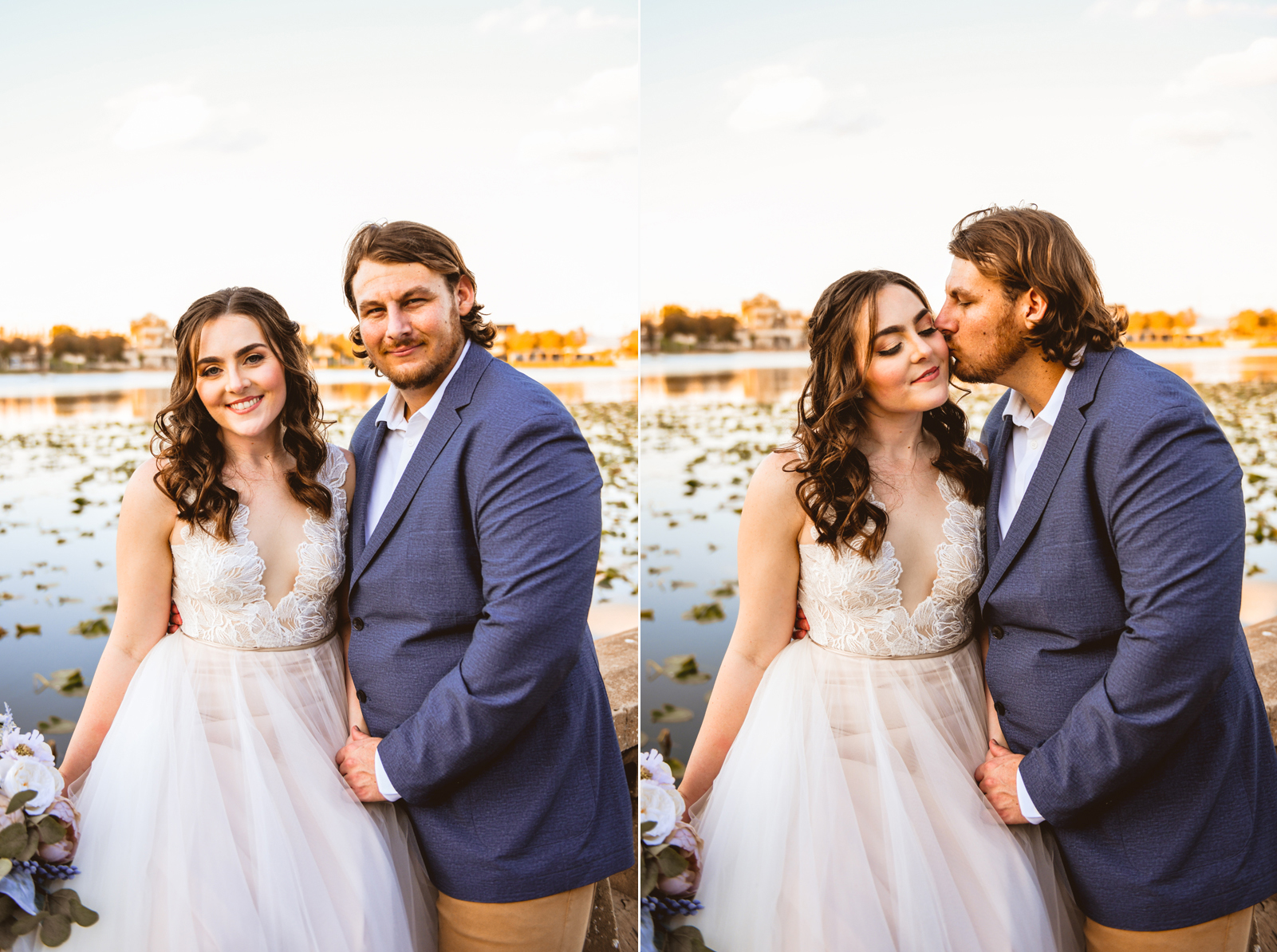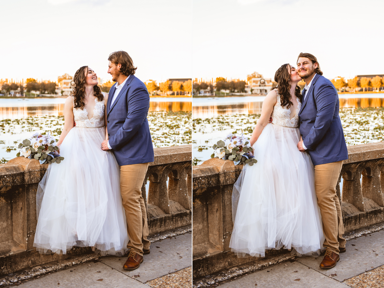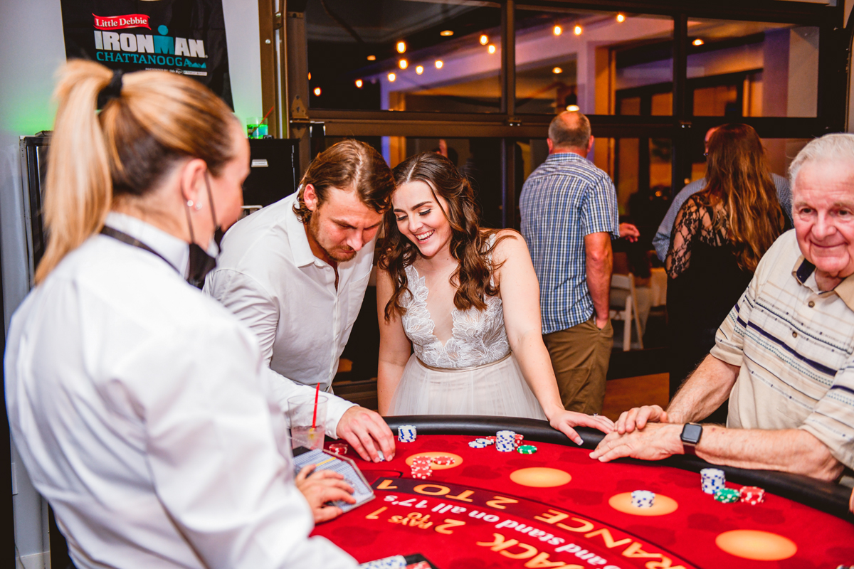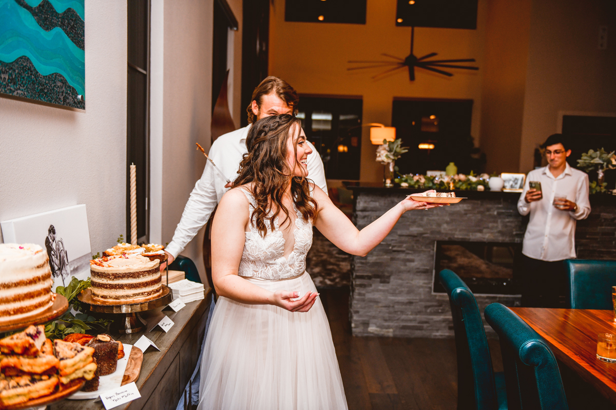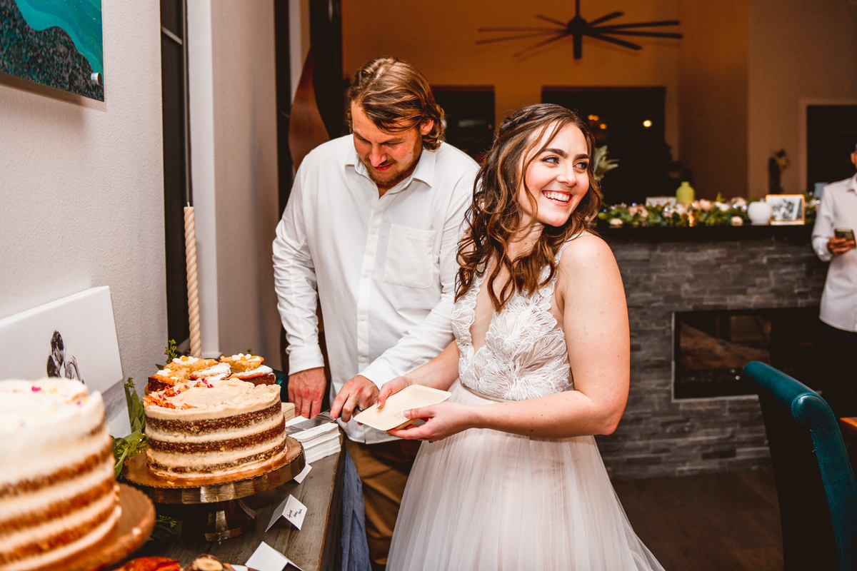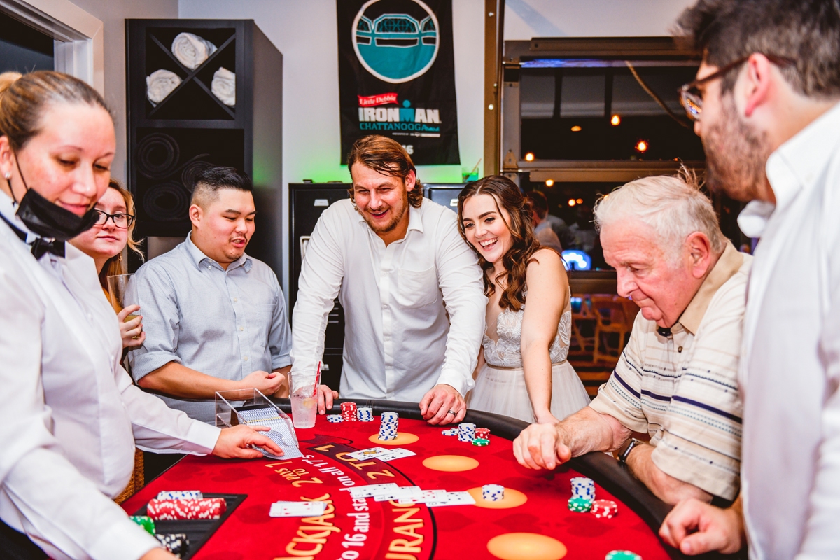 A day a year and a half in the making and we finally made it! The backstory: Rhiannan and Kyle were planning their wedding day for 2020 and maybe you can guess what happens next… oh yeah COVID. Since Rhiannan’s family isn’t local to Florida they wouldn’t be able to make it Florida for their original wedding date. So instead of postponing the wedding or celebrating without Rhiannan’s side of the family, they chose to split their wedding day into two parts! The first part was an elopement in Vero Beach with just Rhiannan, Kyle, the officiant, me, and the ocean. Even though it might have been the windiest day of the year, it was still the perfect day capturing Rhiannan and Kyle become Mr. & Mrs. Hulbert. Fast forward to 2021, it was time to throw the celebration part of their wedding day which brings us to round two! I met up with Rhiannan and Kyle at Hollis Garden for their family and wedding portraits and I got to put on my Lakeland wedding photographer shoes. Even though we got locked outside of the garden we still made the best of it by taking portraits around the area which was still perfectly picturesque. Once we finished, we headed back to Kyle’s family home where the party would be taking place. Rhiannan and Kyle did such an amazing job transforming the house into an ideal indoor/outdoor space for a wedding. Champagne, a table filled with food and desserts galore were lined with greenery centerpieces and photos from their elopement the year before. The outside space featured a bar, photo booth, dance floor, yard games, beer pong, blackjack and roulette! Which were run by professional dealers and was a big hit throughout the night. I think one of my favorite details was the guest “book”. Rhiannan and Kyle set up a huge canvas with paint-filled balloons for guests to throw darts at which created it’s own unique abstract art piece once all the balloons were popped. Such a fun idea and now they have a new art piece for the house that all of their friends and family helped them make. Overall this day was perfect for this Lakeland wedding photographer and I’m so happy I got to capture round two for Mr. & Mrs. Hulbert!