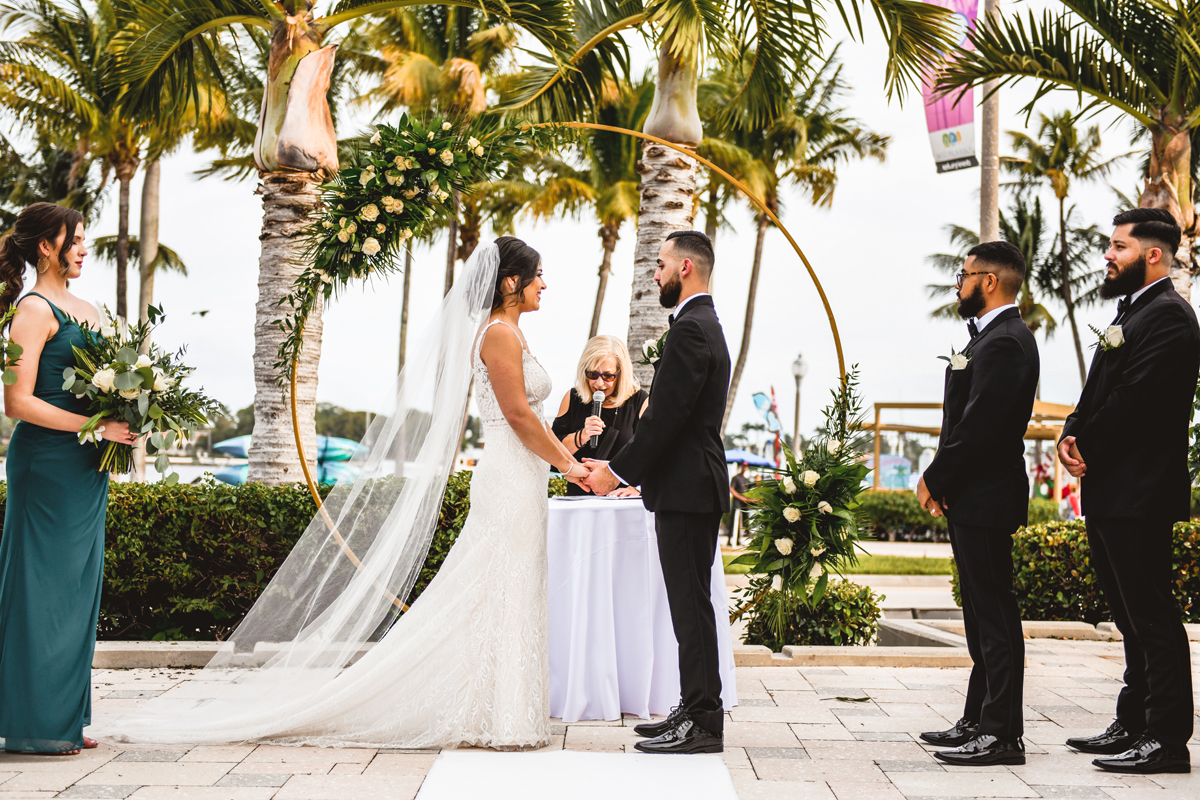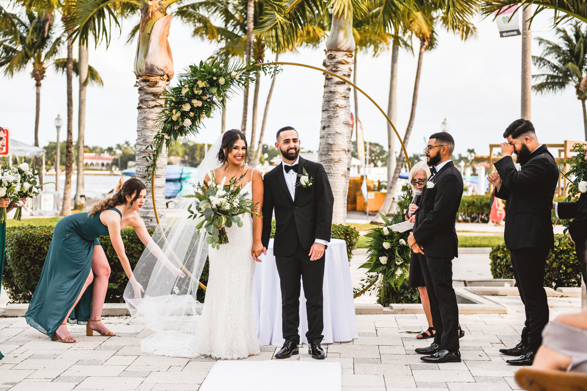 I met Wendy and Anthony back in 2019 and I’m pretty sure they set the record for the longest wedding planning, at least out of my clients. Wendy was finishing up school and they had other accomplishments they needed to conquer before they could fully enjoy getting married so why not pick and date and have the time to plan? Now that hindsight is truly 2020, they couldn’t have had better foresight to plan their wedding at Lake Pavilion for December 2022. I started the day with Wendy and her crew at her mom’s house for details, hair and makeup, first looks, and then it was off on the trolley for their wedding at Lake Pavilion. The day was perfect for an outside ceremony, overlooking the water lined with palm trees. Heartfelt vows, laughs, and rings were exchanged before Wendy and Anthony became Mr. & Mrs. Rosario. Sealing it with perfectly executed dip kiss on their walk back down the aisle. After the ceremony we all boarded the trolley and headed to Worth Avenue for all of the wedding portraits eventually working our way back up to Clock Tower where we caught the trolley again and headed back to the venue. Then it was officially time for the party to start. Kicking off the evening with dinner, speeches, and Mr. and Mrs. Rosario sharing a slice of cake together. Wendy had such a huge part in planning this wedding and all of her hard work absolutely paid off resulting in the most perfect day. It was a long time coming but the Rosario wedding was 100% worth the wait and I loved every second of working with these two. Cheers!