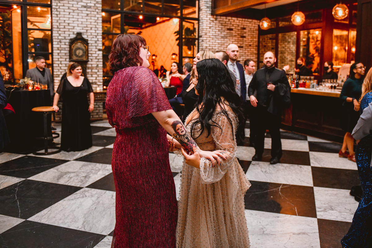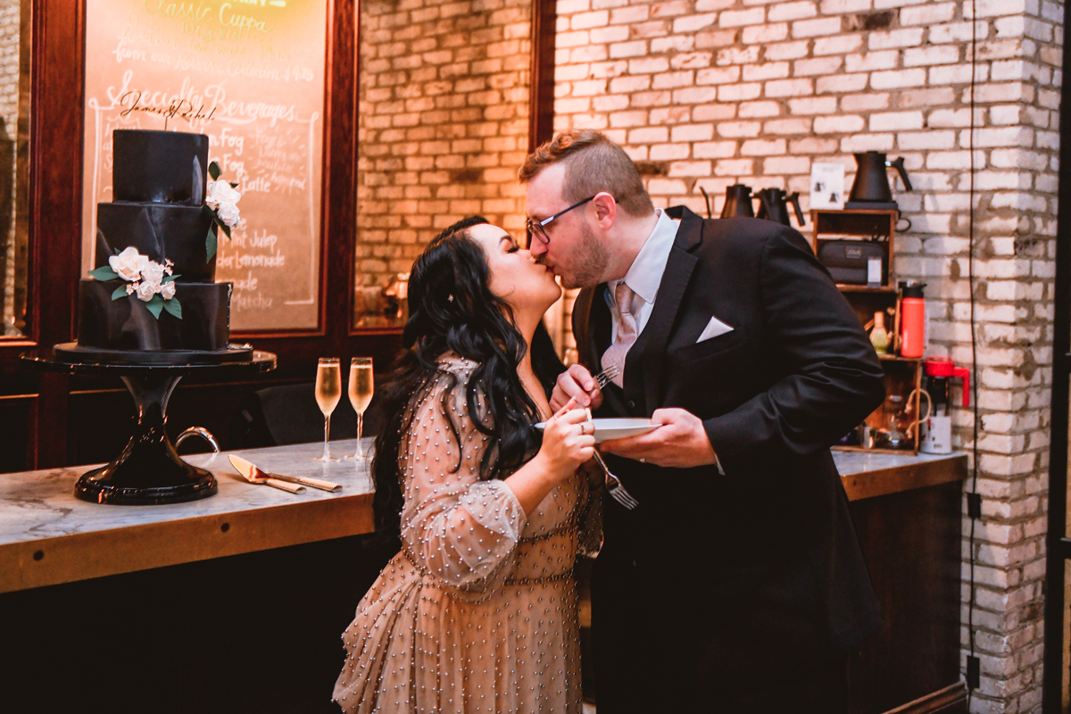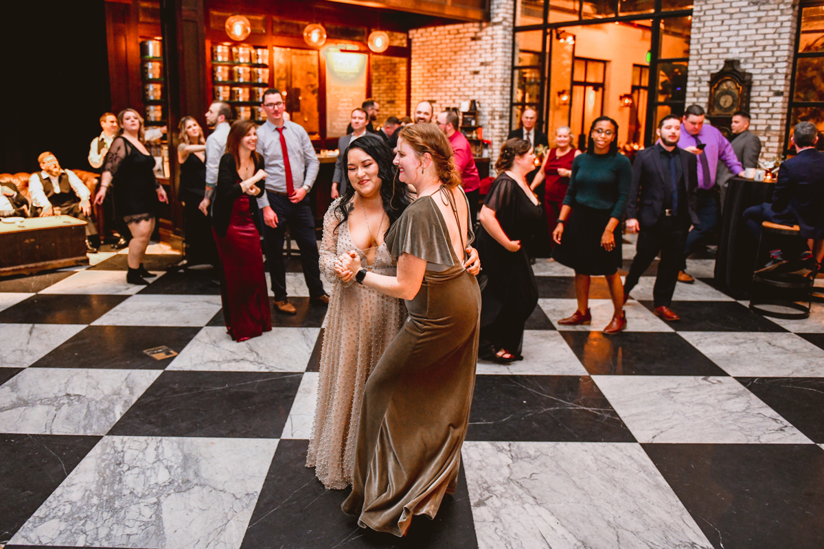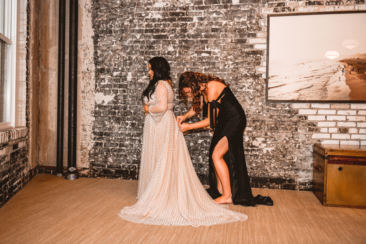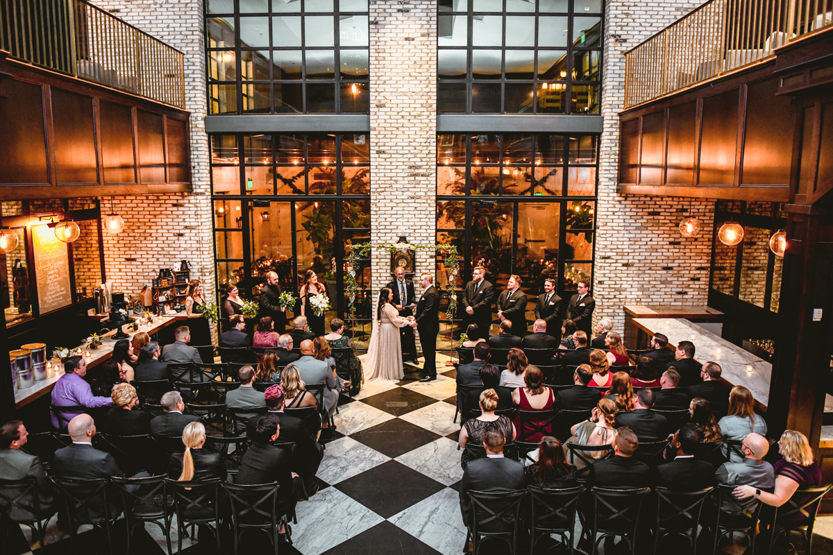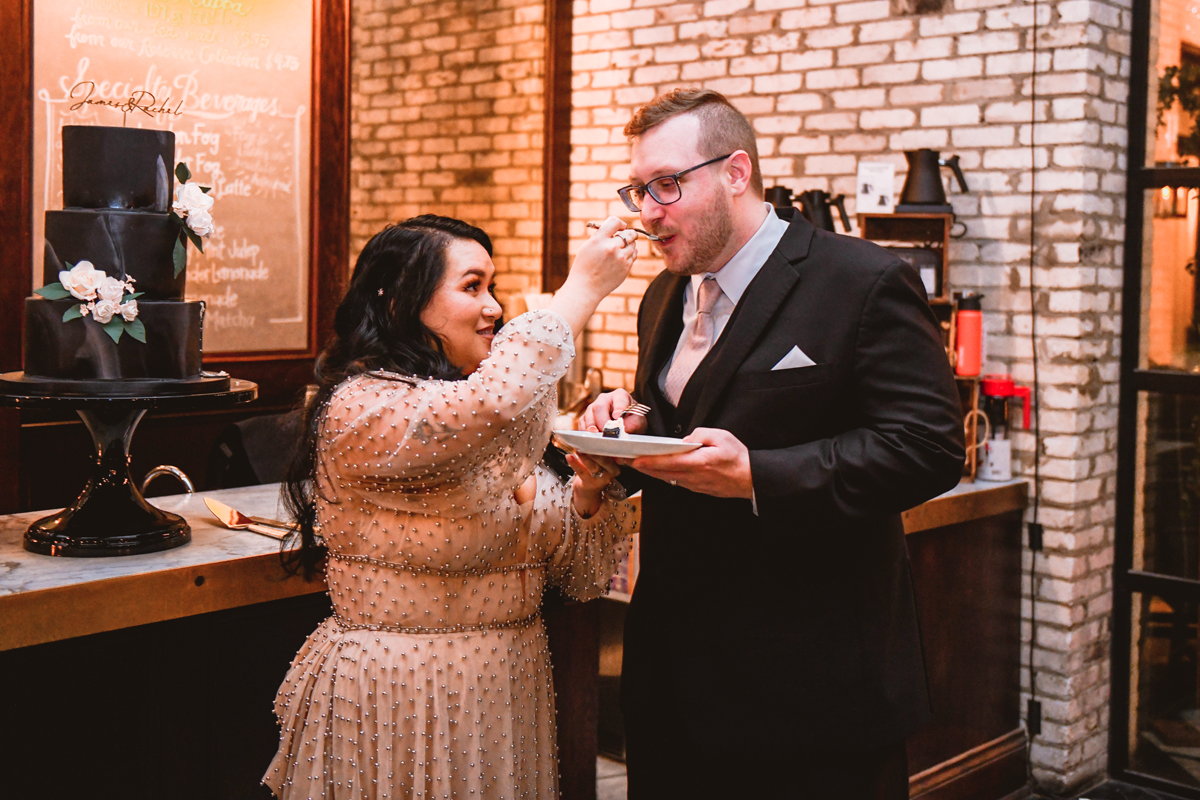 An Oxford Exchange wedding has been on my bucket list of venues to shoot at since I started photographing in the Tampa Bay area. Who hasn’t gone to brunch at Oxford without becoming completely enthralled with every single detail this magical building has to offer? I could only imagine how amazing it would be to photograph a wedding there and then Rachel and Jim stepped into the picture and elevated it. The backstory: I met Rachel a couple of years ago at the salon where we were both getting our hair done. With our hair in and out of processing for 6 hours, there wasn’t much to do but snack and chat so we did! It’s hard to believe meeting Rachel that day would lead me to their wedding day so many years later! I first got to work with Rachel and Jim for their engagement session at Philippe Park. This was just a little insight into what I could expect on their big day and I was super excited. Rachel and I have very similar taste when it comes to style and vibe. We love unique elements all things dark and moody so I knew whatever Rachel had planned for her Oxford Exchange wedding day was going to be something straight from my personal Pinterest board and I wasn’t wrong. From her stunning cream, beaded wedding gown, to the black bridesmaid dresses and cake, Rachel was pulling on all my heart strings. Utilizing all of what Oxford Exchange had to offer for their portraits paired with Rachel’s unique sense of style was truly *chefs kiss*. My favorite part of the evening was when all the guests lined up with confetti poppers as Mr. & Mrs. Watt exited into a luxury car that drove them away into the night. It doesn’t get much better than that folks!