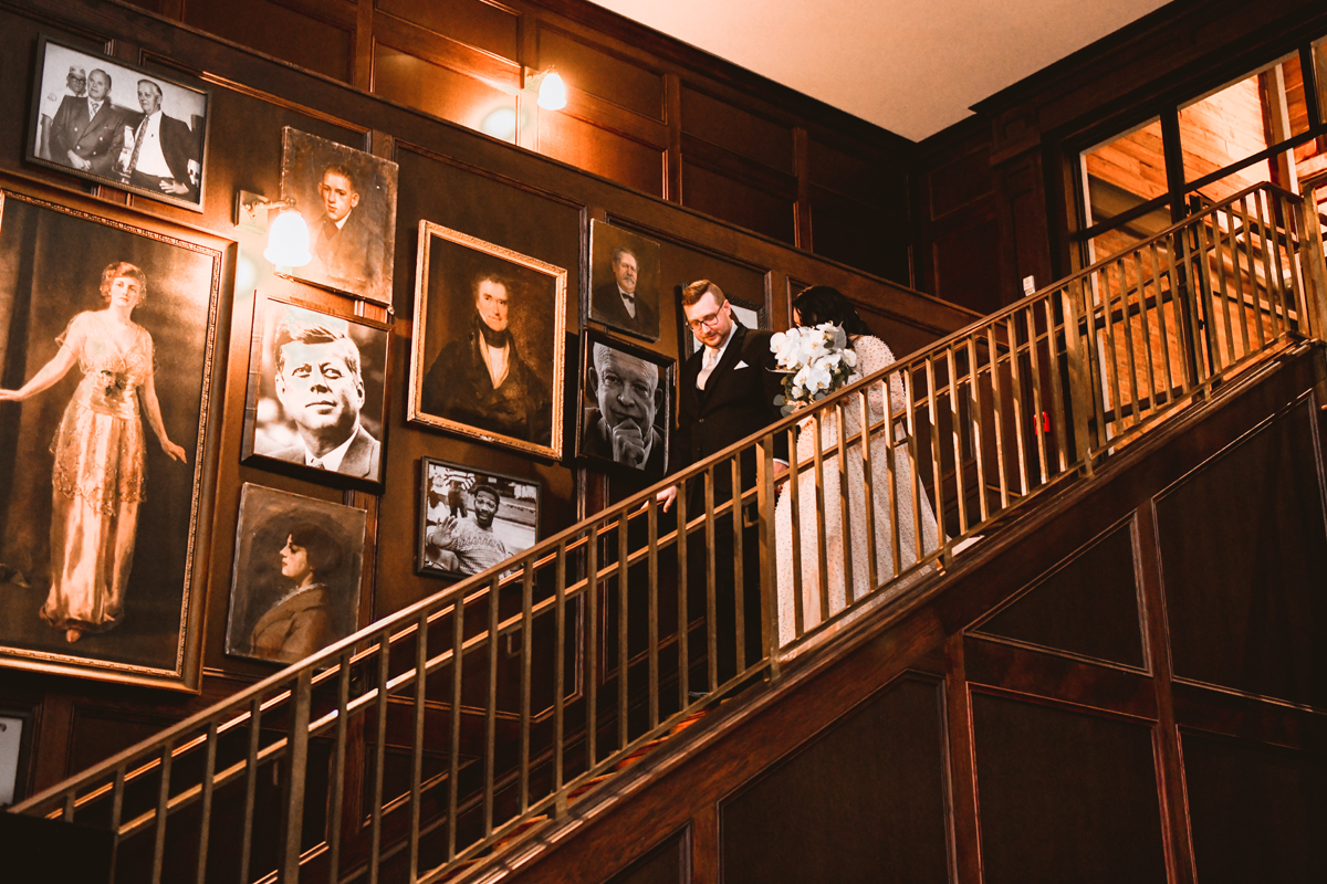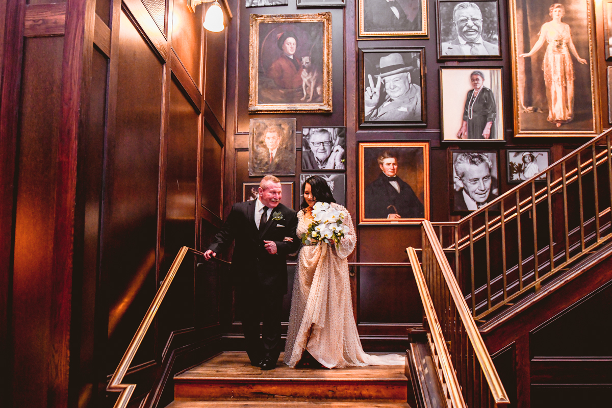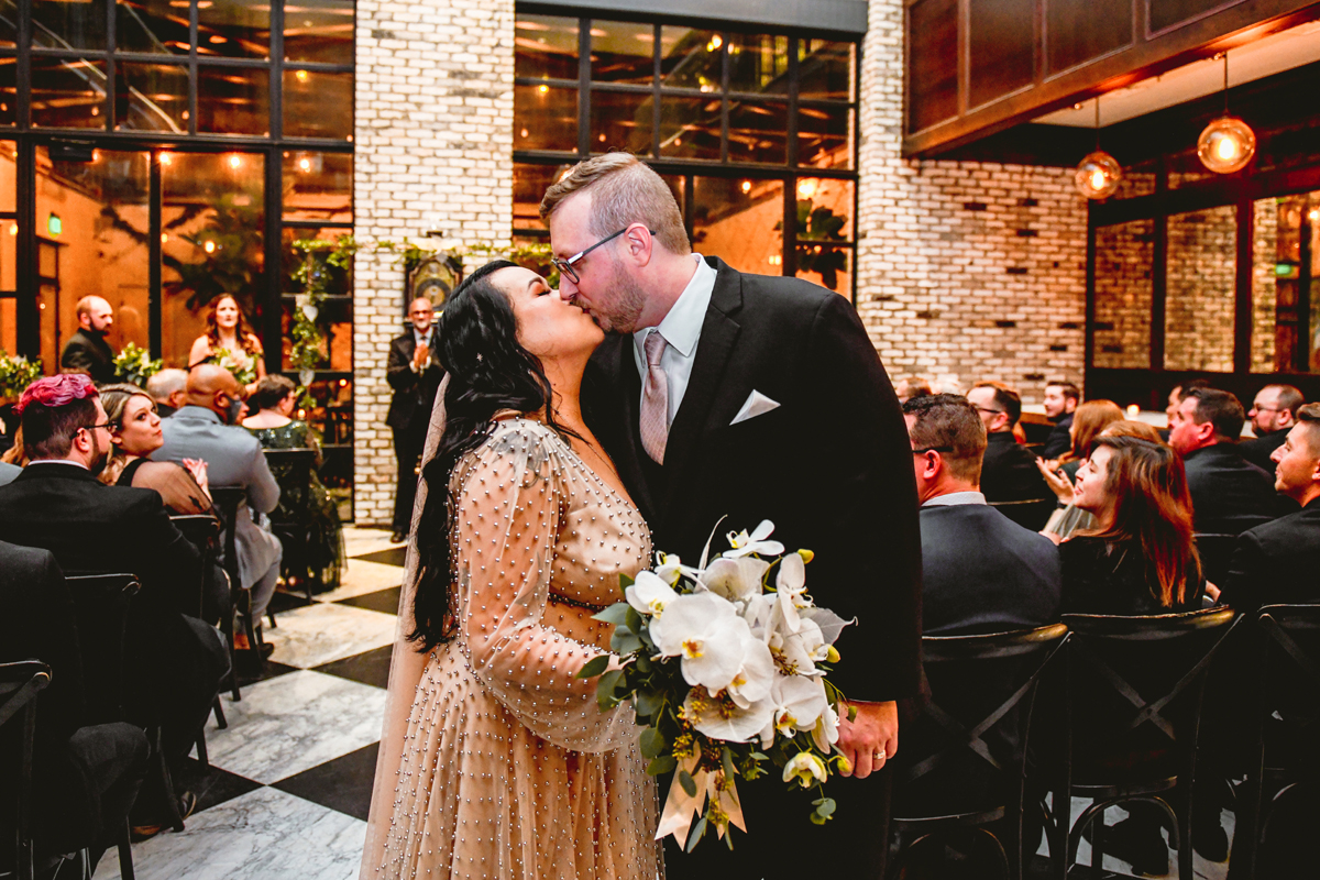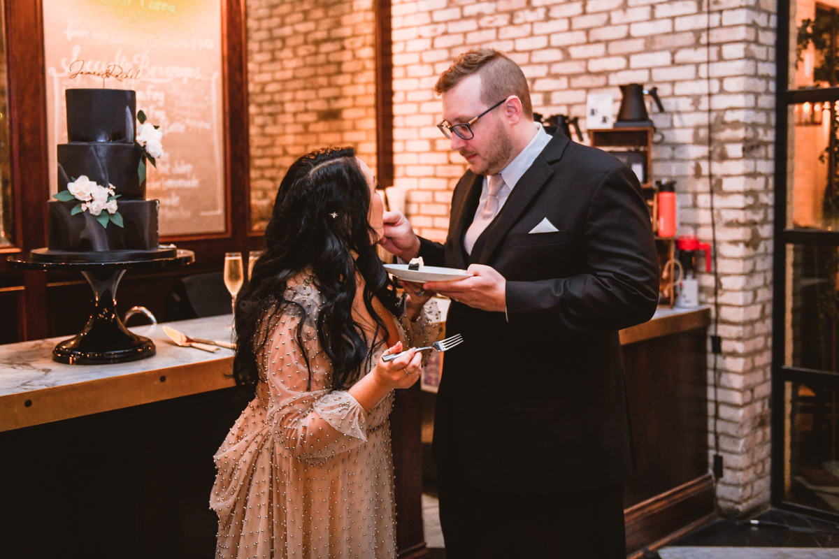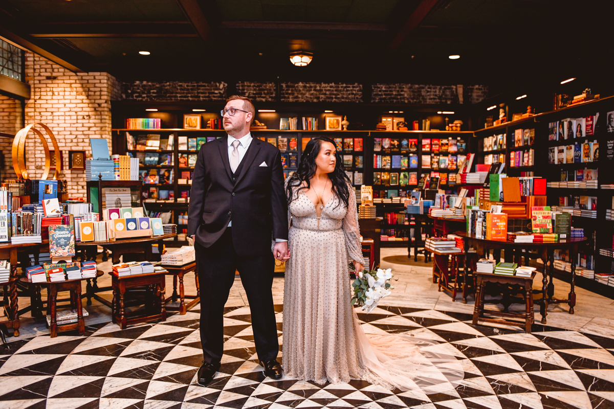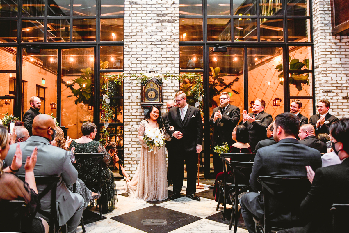 An Oxford Exchange wedding has been on my bucket list of venues to shoot at since I started photographing in the Tampa Bay area. Who hasn’t gone to brunch at Oxford without becoming completely enthralled with every single detail this magical building has to offer? I could only imagine how amazing it would be to photograph a wedding there and then Rachel and Jim stepped into the picture and elevated it. The backstory: I met Rachel a couple of years ago at the salon where we were both getting our hair done. With our hair in and out of processing for 6 hours, there wasn’t much to do but snack and chat so we did! It’s hard to believe meeting Rachel that day would lead me to their wedding day so many years later! I first got to work with Rachel and Jim for their engagement session at Philippe Park. This was just a little insight into what I could expect on their big day and I was super excited. Rachel and I have very similar taste when it comes to style and vibe. We love unique elements all things dark and moody so I knew whatever Rachel had planned for her Oxford Exchange wedding day was going to be something straight from my personal Pinterest board and I wasn’t wrong. From her stunning cream, beaded wedding gown, to the black bridesmaid dresses and cake, Rachel was pulling on all my heart strings. Utilizing all of what Oxford Exchange had to offer for their portraits paired with Rachel’s unique sense of style was truly *chefs kiss*. My favorite part of the evening was when all the guests lined up with confetti poppers as Mr. & Mrs. Watt exited into a luxury car that drove them away into the night. It doesn’t get much better than that folks!
