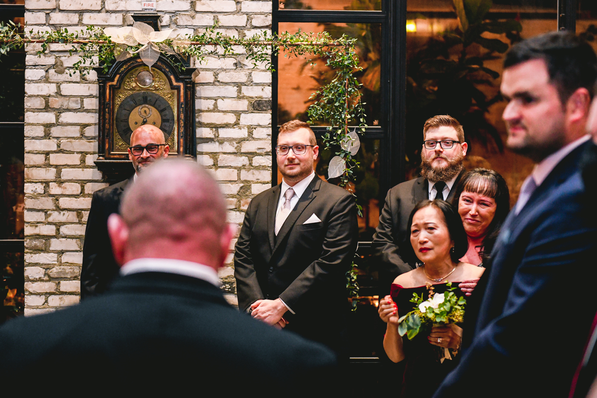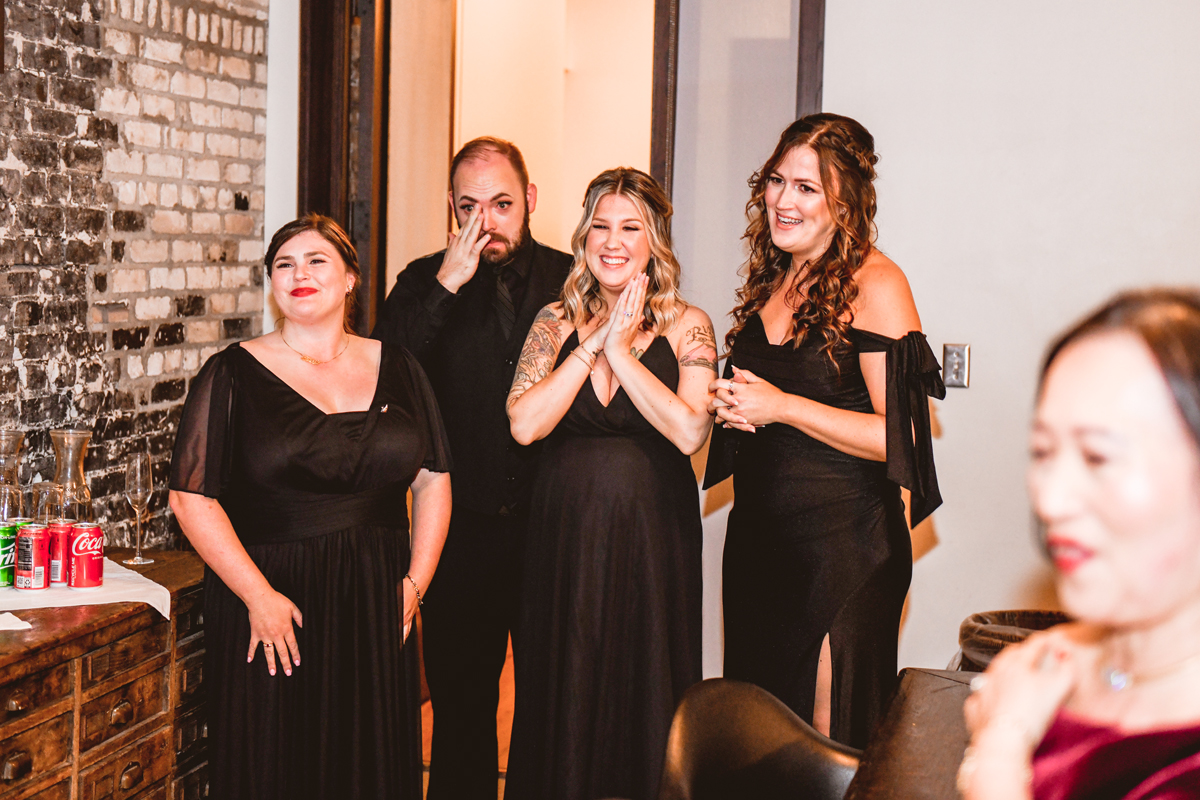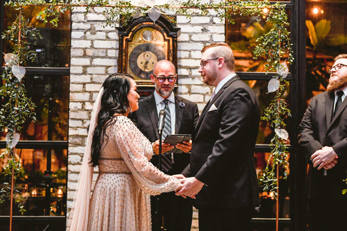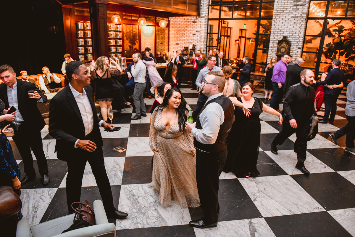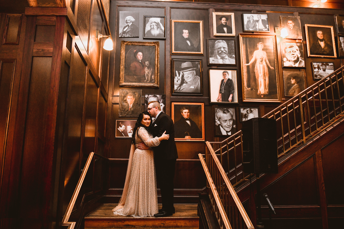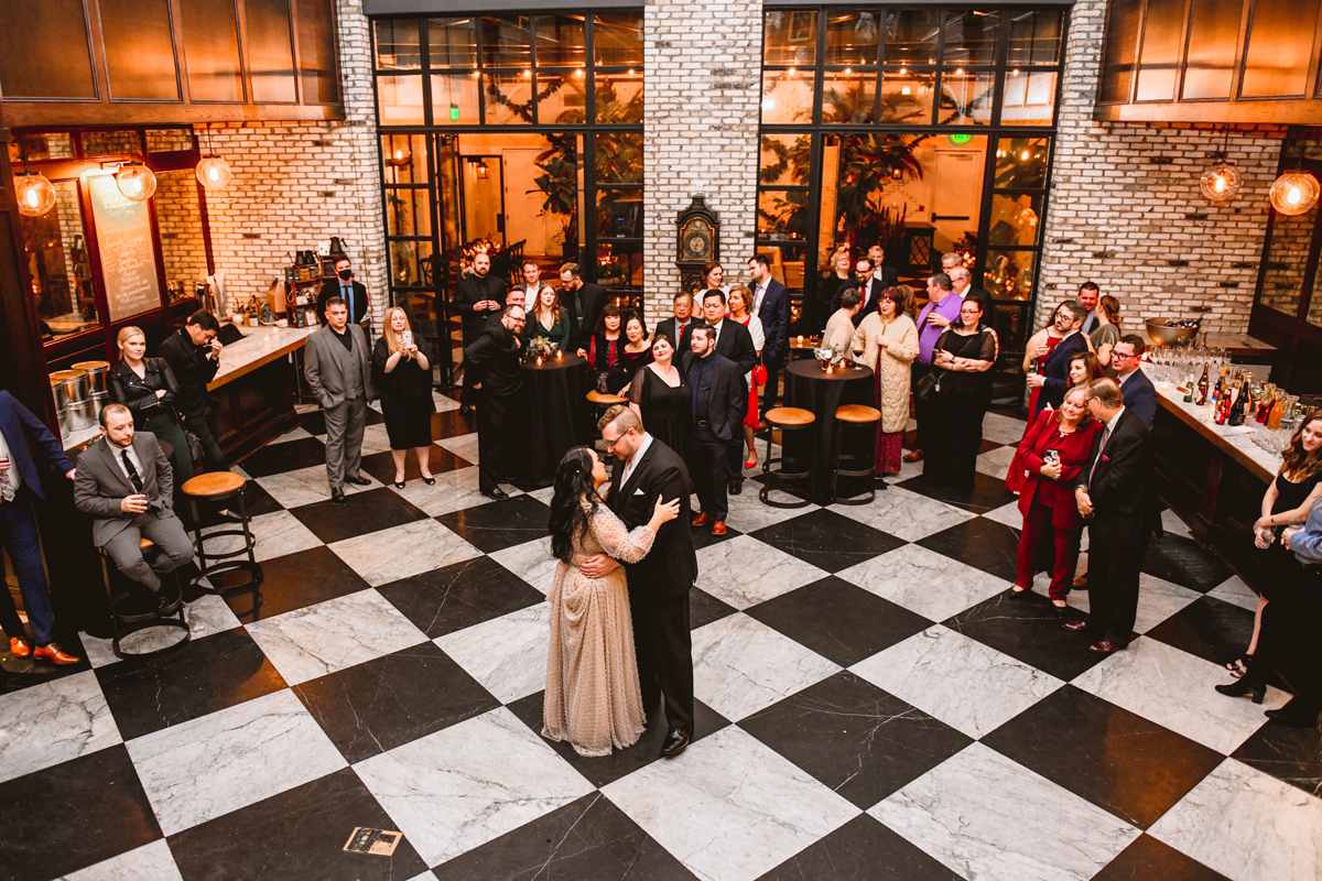 An Oxford Exchange wedding has been on my bucket list of venues to shoot at since I started photographing in the Tampa Bay area. Who hasn’t gone to brunch at Oxford without becoming completely enthralled with every single detail this magical building has to offer? I could only imagine how amazing it would be to photograph a wedding there and then Rachel and Jim stepped into the picture and elevated it. The backstory: I met Rachel a couple of years ago at the salon where we were both getting our hair done. With our hair in and out of processing for 6 hours, there wasn’t much to do but snack and chat so we did! It’s hard to believe meeting Rachel that day would lead me to their wedding day so many years later! I first got to work with Rachel and Jim for their engagement session at Philippe Park. This was just a little insight into what I could expect on their big day and I was super excited. Rachel and I have very similar taste when it comes to style and vibe. We love unique elements all things dark and moody so I knew whatever Rachel had planned for her Oxford Exchange wedding day was going to be something straight from my personal Pinterest board and I wasn’t wrong. From her stunning cream, beaded wedding gown, to the black bridesmaid dresses and cake, Rachel was pulling on all my heart strings. Utilizing all of what Oxford Exchange had to offer for their portraits paired with Rachel’s unique sense of style was truly *chefs kiss*. My favorite part of the evening was when all the guests lined up with confetti poppers as Mr. & Mrs. Watt exited into a luxury car that drove them away into the night. It doesn’t get much better than that folks!