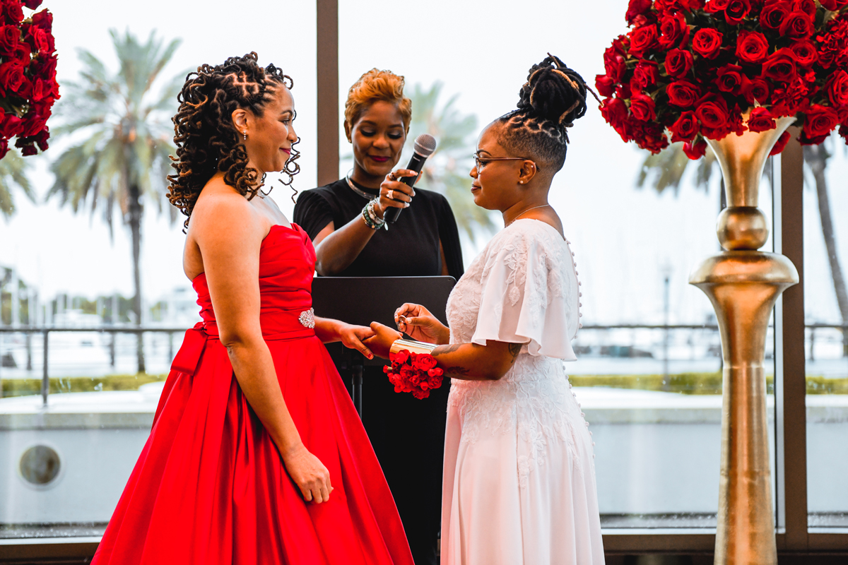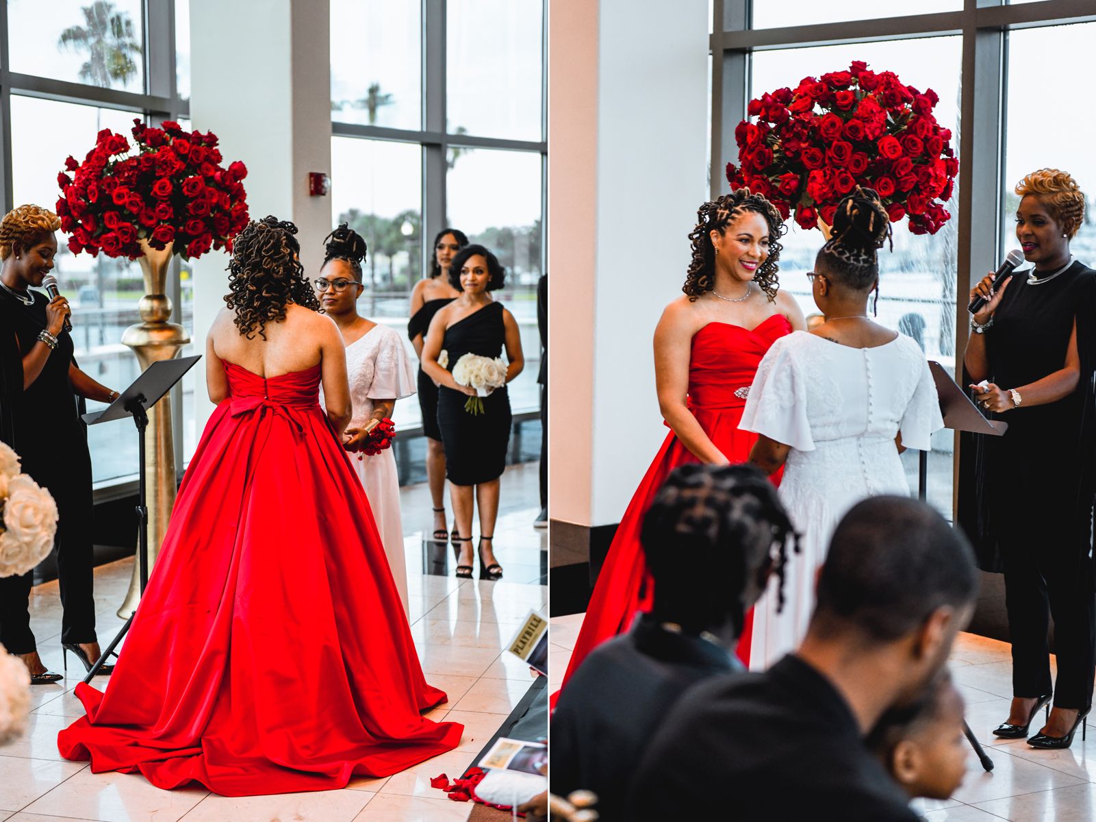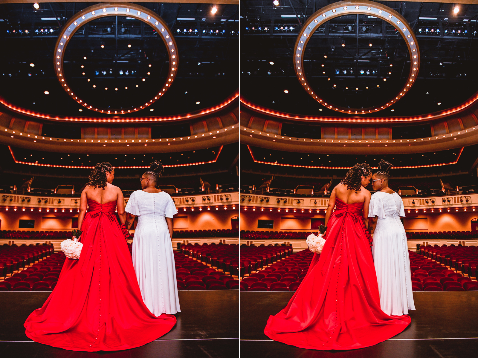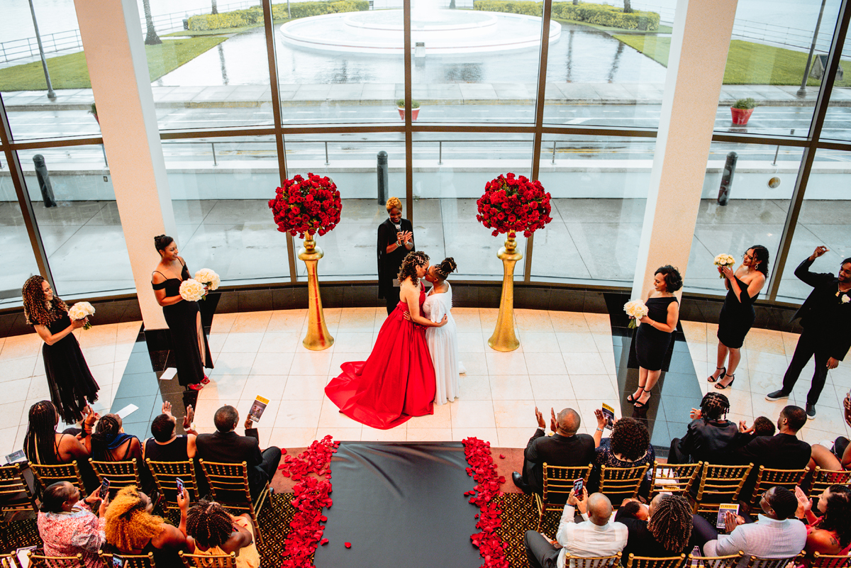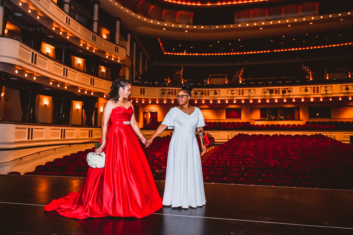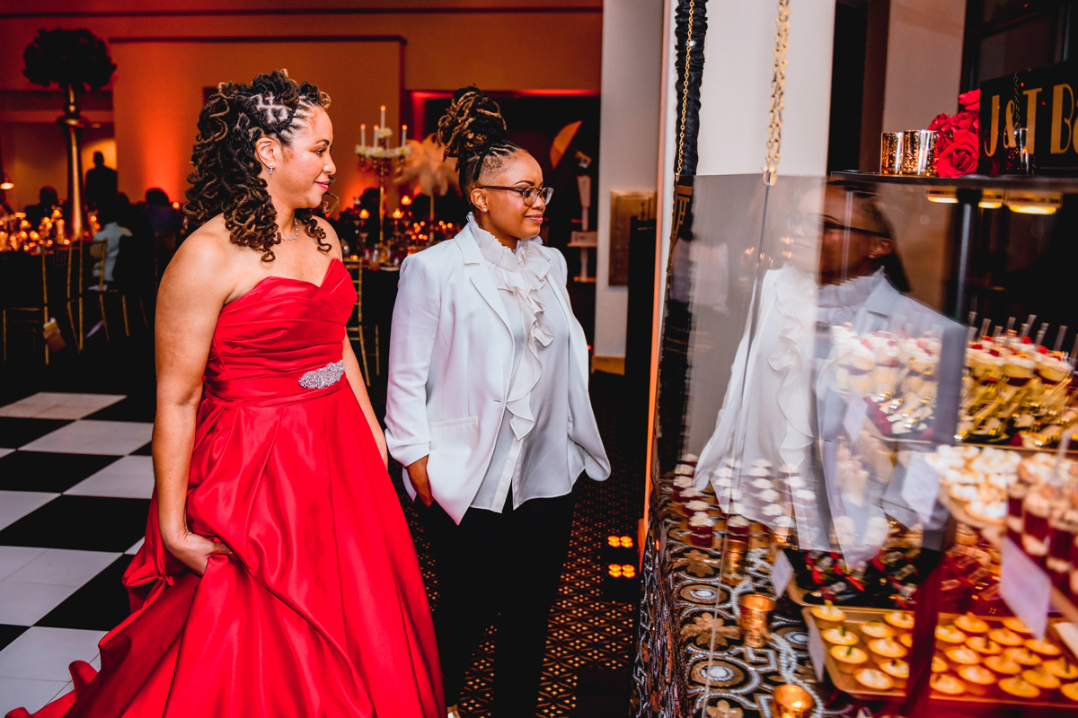 I first met Tiffiny and Jordyn at their Ybor engagement session and knew right off the bat their Mahaffey Theater wedding day was going to be epic. That was an understatement to say the least. Combining forces with Staci of UNIQUE Weddings and Events, the brain child that was Tiffiny and Jordyn’s wedding vision was executed flawlessly and is probably one of the most beautiful weddings I’ve photographed to date. Peep the reception detail shots to see what I’m talking about, but I’ll start back at the beginning. I spent the morning with Tiffiny and Jordyn as they both got ready together until they went in separate rooms to get dressed prior to their first look. I loved that they got to share their wedding morning together but still kept the tradition of waiting to see each other in their wedding dresses until their first look. After their first look in the hotel we migrated across the street to the Mahaffey Theater and took some show stopping portraits on the theater stage as we waited for guests to arrive for the ceremony. Perks of having a Mahaffey Theater wedding! The ceremony took place in front east facing windows looking out towards the bay and all the sailboats in the harbor. An afternoon thunderstorm had rolled in so the added dramatics of a lightning striking all around was a big hit with the guests. After a surprise musical guest during the vows and the rings were exchanged, Tiffiny and Jordyn became wife and wife and danced all the way back down the aisle. The rest of the evening was filled with a stunning custom dessert station, dinner, drinks and lots of dancing. Congrats Tiffiny and Jordyn, I’m so happy I got to capture this day for you!