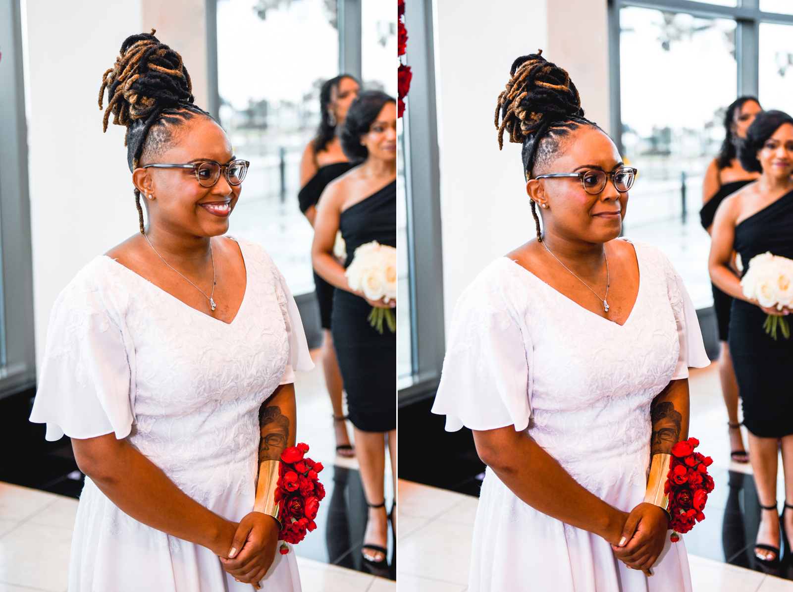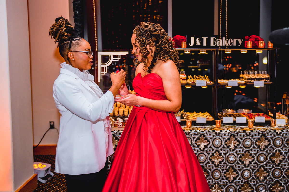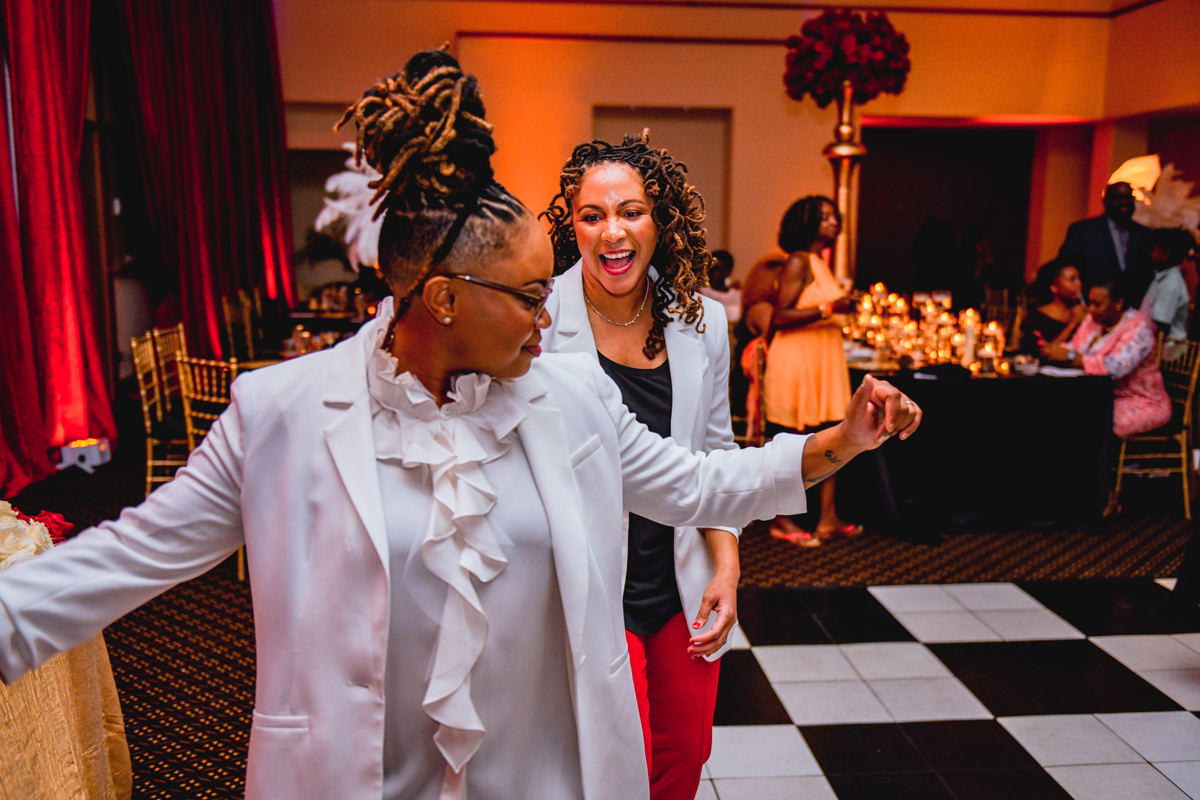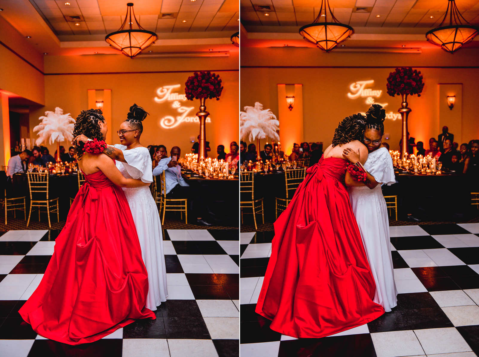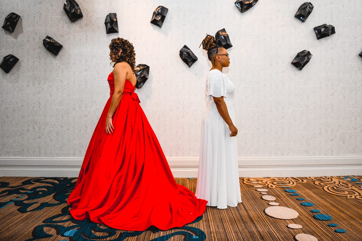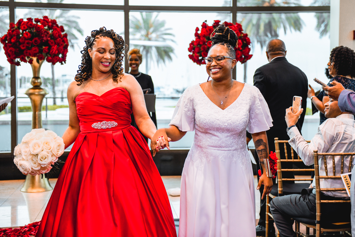 I first met Tiffiny and Jordyn at their Ybor engagement session and knew right off the bat their Mahaffey Theater wedding day was going to be epic. That was an understatement to say the least. Combining forces with Staci of UNIQUE Weddings and Events, the brain child that was Tiffiny and Jordyn’s wedding vision was executed flawlessly and is probably one of the most beautiful weddings I’ve photographed to date. Peep the reception detail shots to see what I’m talking about, but I’ll start back at the beginning. I spent the morning with Tiffiny and Jordyn as they both got ready together until they went in separate rooms to get dressed prior to their first look. I loved that they got to share their wedding morning together but still kept the tradition of waiting to see each other in their wedding dresses until their first look. After their first look in the hotel we migrated across the street to the Mahaffey Theater and took some show stopping portraits on the theater stage as we waited for guests to arrive for the ceremony. Perks of having a Mahaffey Theater wedding! The ceremony took place in front east facing windows looking out towards the bay and all the sailboats in the harbor. An afternoon thunderstorm had rolled in so the added dramatics of a lightning striking all around was a big hit with the guests. After a surprise musical guest during the vows and the rings were exchanged, Tiffiny and Jordyn became wife and wife and danced all the way back down the aisle. The rest of the evening was filled with a stunning custom dessert station, dinner, drinks and lots of dancing. Congrats Tiffiny and Jordyn, I’m so happy I got to capture this day for you!