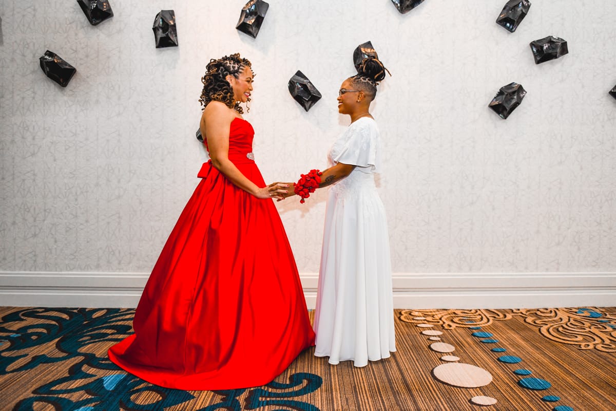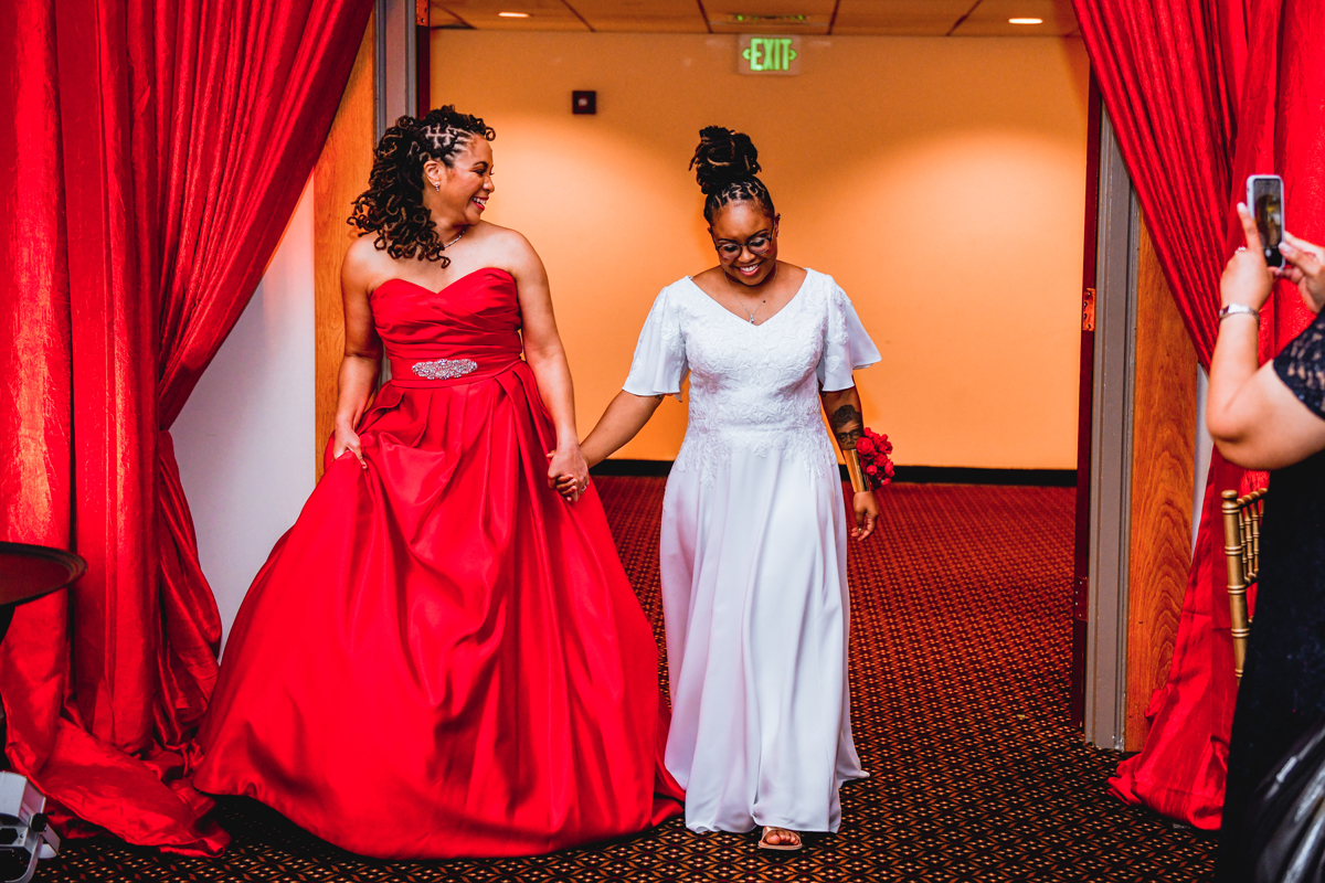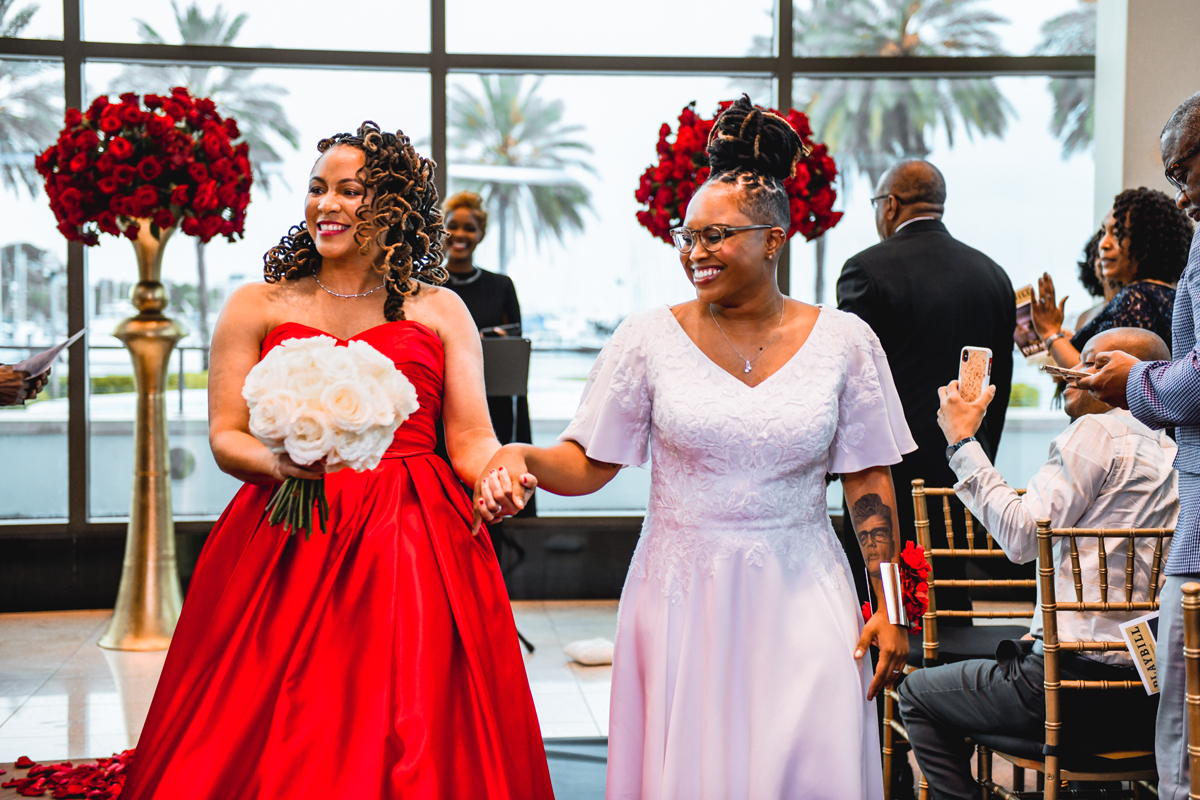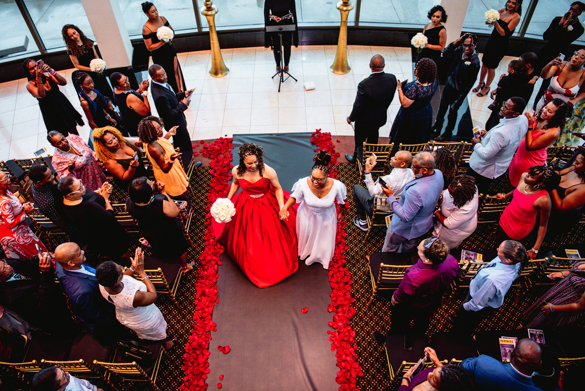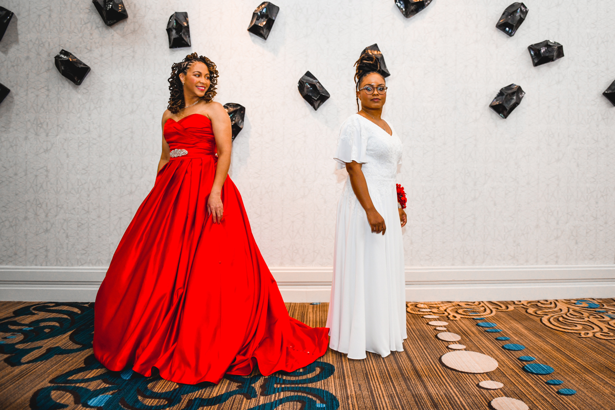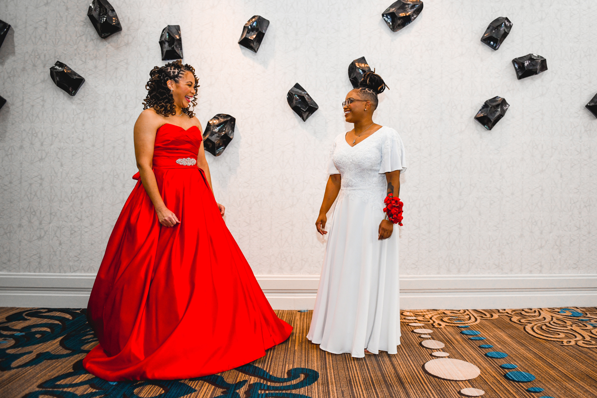 I first met Tiffiny and Jordyn at their Ybor engagement session and knew right off the bat their Mahaffey Theater wedding day was going to be epic. That was an understatement to say the least. Combining forces with Staci of UNIQUE Weddings and Events, the brain child that was Tiffiny and Jordyn’s wedding vision was executed flawlessly and is probably one of the most beautiful weddings I’ve photographed to date. Peep the reception detail shots to see what I’m talking about, but I’ll start back at the beginning. I spent the morning with Tiffiny and Jordyn as they both got ready together until they went in separate rooms to get dressed prior to their first look. I loved that they got to share their wedding morning together but still kept the tradition of waiting to see each other in their wedding dresses until their first look. After their first look in the hotel we migrated across the street to the Mahaffey Theater and took some show stopping portraits on the theater stage as we waited for guests to arrive for the ceremony. Perks of having a Mahaffey Theater wedding! The ceremony took place in front east facing windows looking out towards the bay and all the sailboats in the harbor. An afternoon thunderstorm had rolled in so the added dramatics of a lightning striking all around was a big hit with the guests. After a surprise musical guest during the vows and the rings were exchanged, Tiffiny and Jordyn became wife and wife and danced all the way back down the aisle. The rest of the evening was filled with a stunning custom dessert station, dinner, drinks and lots of dancing. Congrats Tiffiny and Jordyn, I’m so happy I got to capture this day for you!