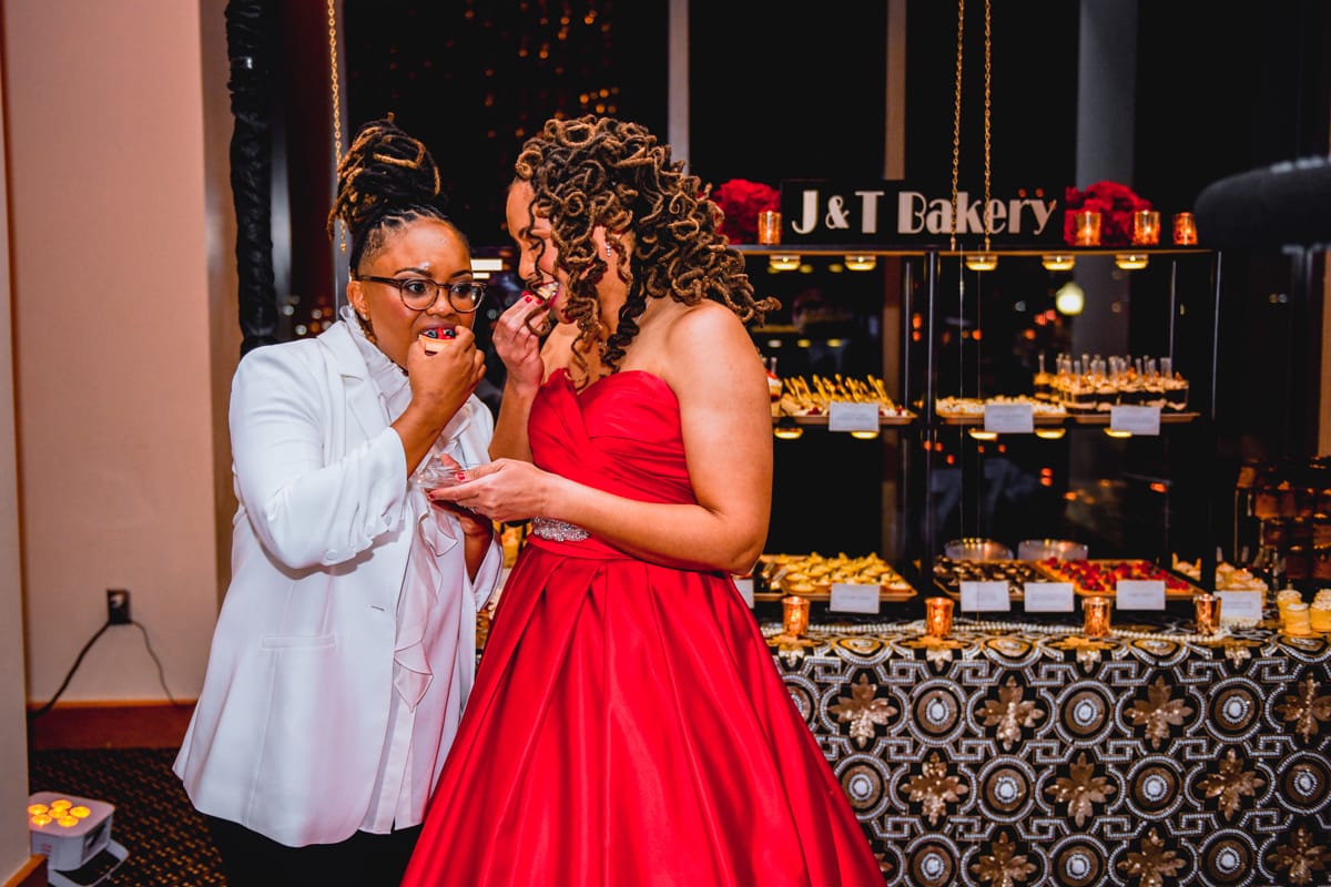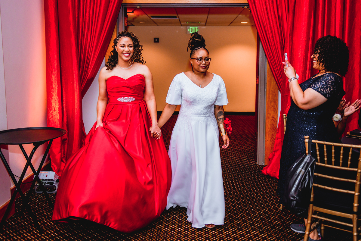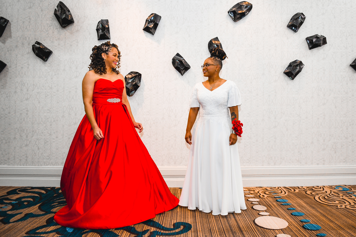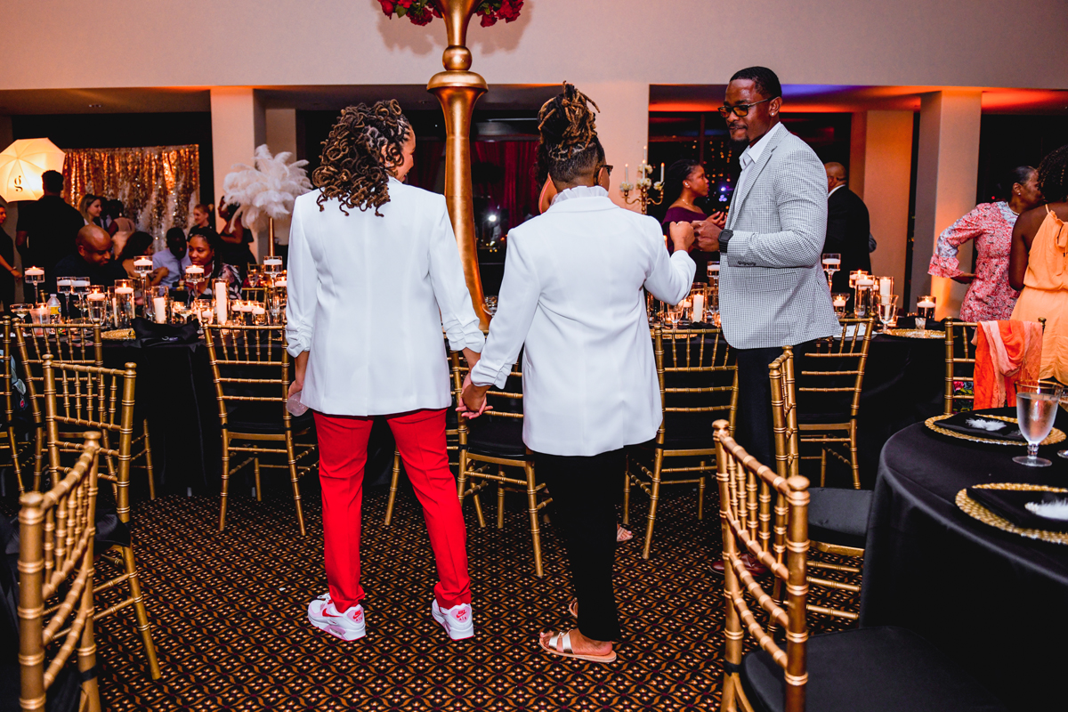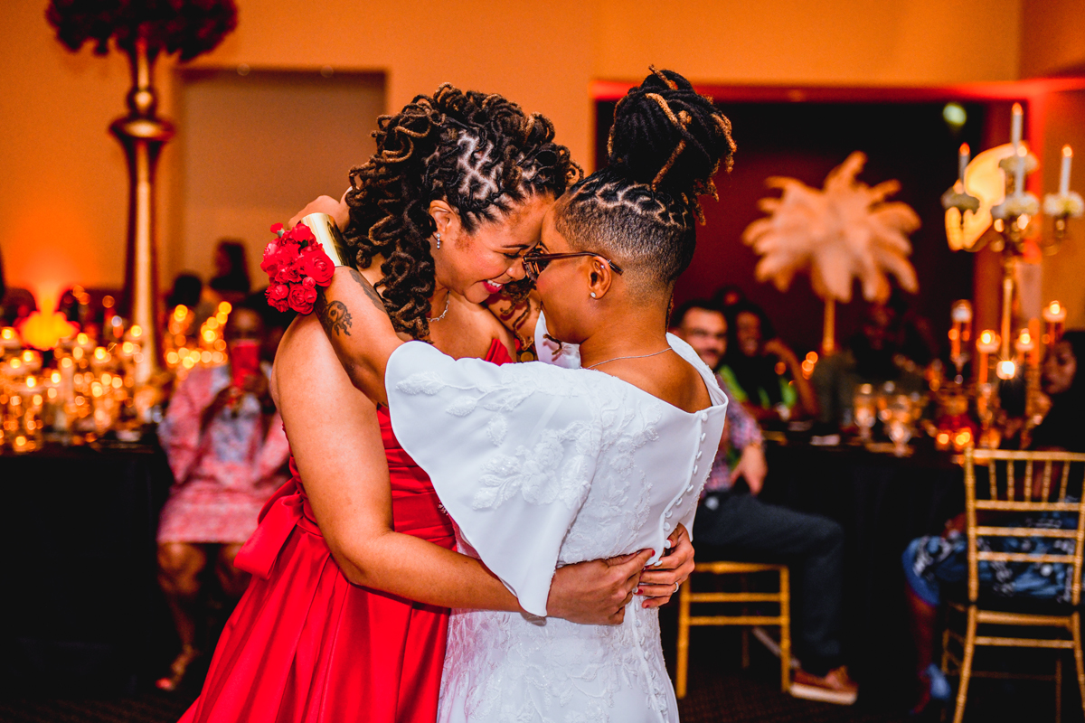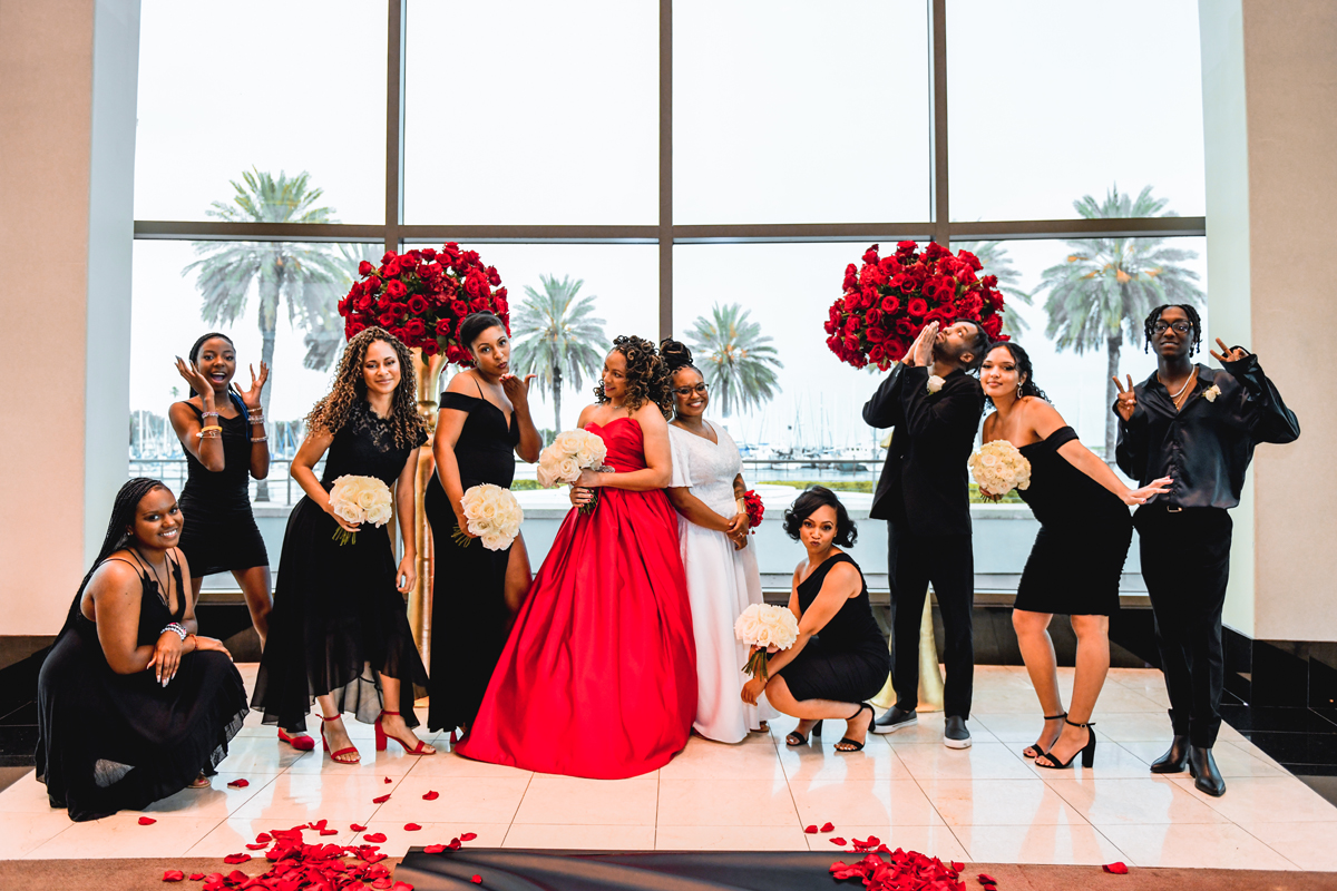 I first met Tiffiny and Jordyn at their Ybor engagement session and knew right off the bat their Mahaffey Theater wedding day was going to be epic. That was an understatement to say the least. Combining forces with Staci of UNIQUE Weddings and Events, the brain child that was Tiffiny and Jordyn’s wedding vision was executed flawlessly and is probably one of the most beautiful weddings I’ve photographed to date. Peep the reception detail shots to see what I’m talking about, but I’ll start back at the beginning. I spent the morning with Tiffiny and Jordyn as they both got ready together until they went in separate rooms to get dressed prior to their first look. I loved that they got to share their wedding morning together but still kept the tradition of waiting to see each other in their wedding dresses until their first look. After their first look in the hotel we migrated across the street to the Mahaffey Theater and took some show stopping portraits on the theater stage as we waited for guests to arrive for the ceremony. Perks of having a Mahaffey Theater wedding! The ceremony took place in front east facing windows looking out towards the bay and all the sailboats in the harbor. An afternoon thunderstorm had rolled in so the added dramatics of a lightning striking all around was a big hit with the guests. After a surprise musical guest during the vows and the rings were exchanged, Tiffiny and Jordyn became wife and wife and danced all the way back down the aisle. The rest of the evening was filled with a stunning custom dessert station, dinner, drinks and lots of dancing. Congrats Tiffiny and Jordyn, I’m so happy I got to capture this day for you!