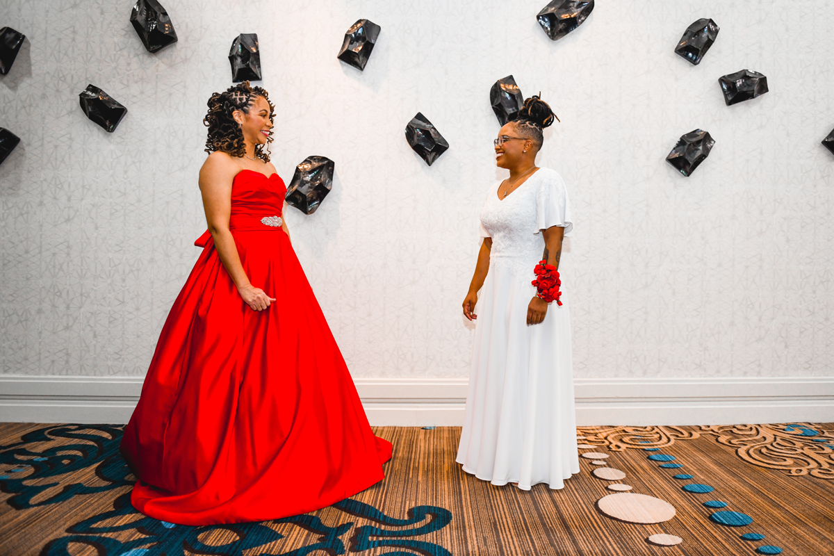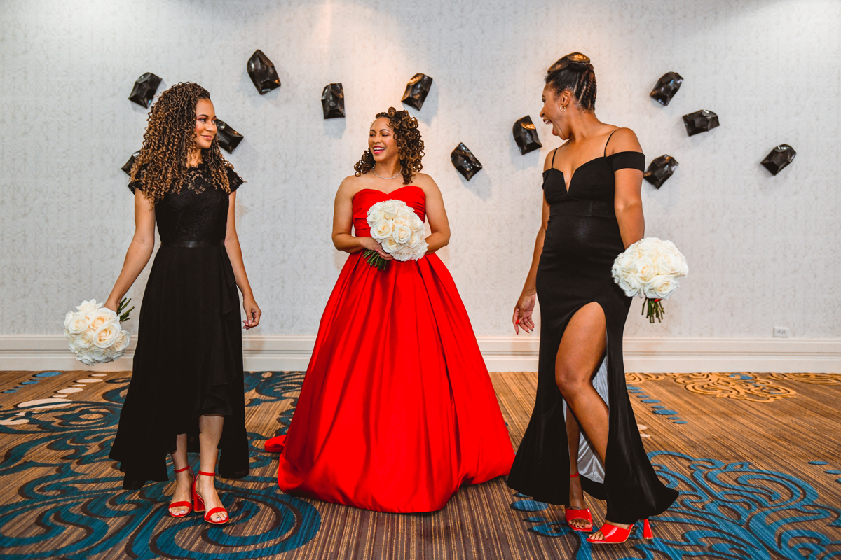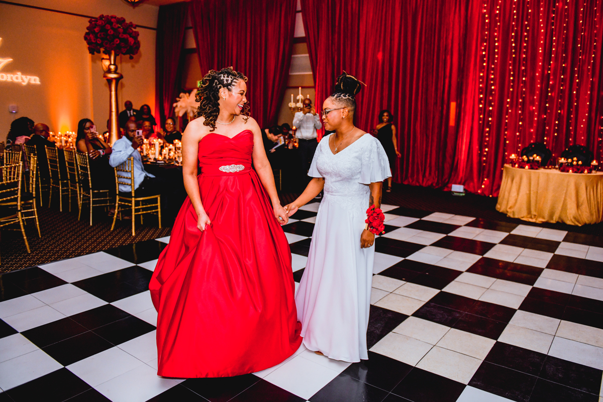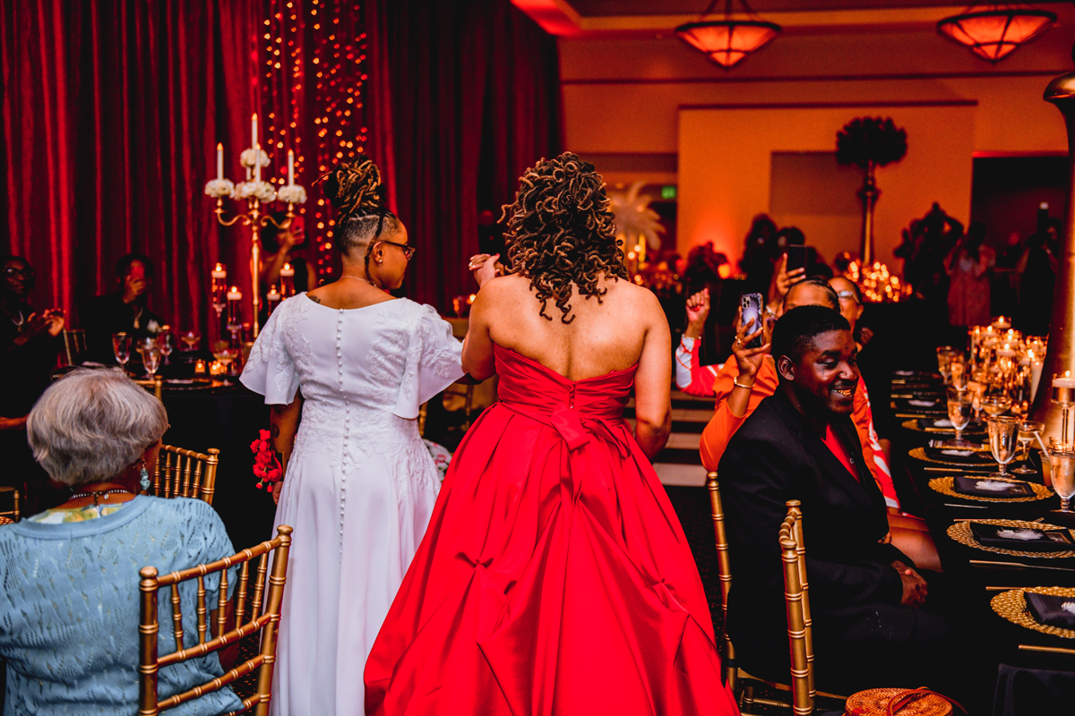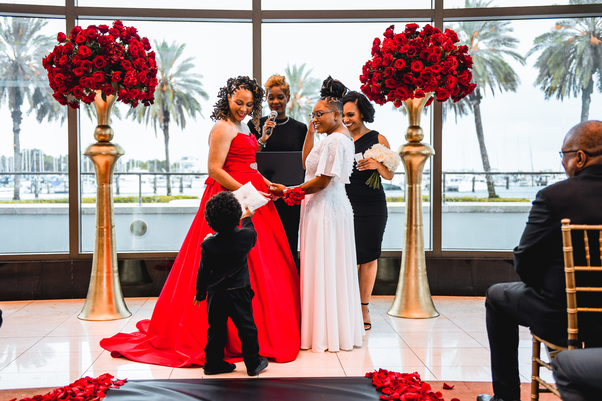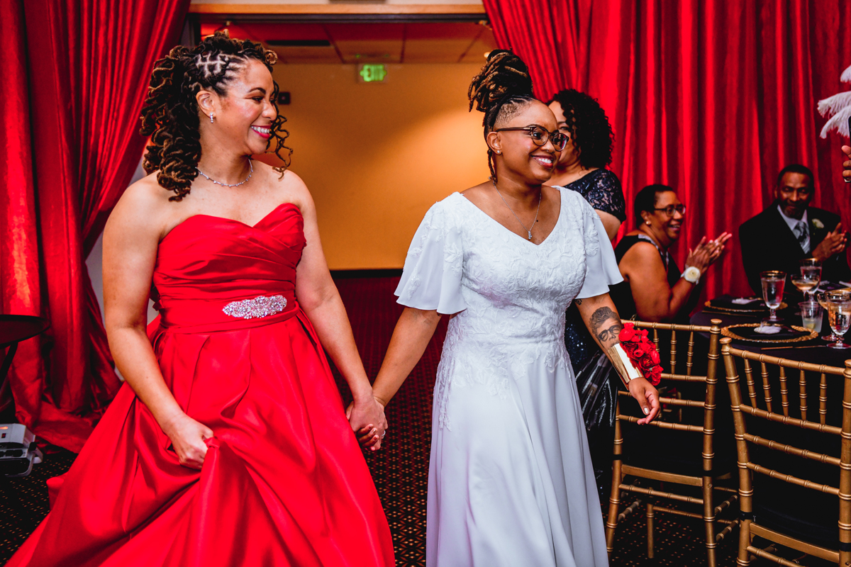 I first met Tiffiny and Jordyn at their Ybor engagement session and knew right off the bat their Mahaffey Theater wedding day was going to be epic. That was an understatement to say the least. Combining forces with Staci of UNIQUE Weddings and Events, the brain child that was Tiffiny and Jordyn’s wedding vision was executed flawlessly and is probably one of the most beautiful weddings I’ve photographed to date. Peep the reception detail shots to see what I’m talking about, but I’ll start back at the beginning. I spent the morning with Tiffiny and Jordyn as they both got ready together until they went in separate rooms to get dressed prior to their first look. I loved that they got to share their wedding morning together but still kept the tradition of waiting to see each other in their wedding dresses until their first look. After their first look in the hotel we migrated across the street to the Mahaffey Theater and took some show stopping portraits on the theater stage as we waited for guests to arrive for the ceremony. Perks of having a Mahaffey Theater wedding! The ceremony took place in front east facing windows looking out towards the bay and all the sailboats in the harbor. An afternoon thunderstorm had rolled in so the added dramatics of a lightning striking all around was a big hit with the guests. After a surprise musical guest during the vows and the rings were exchanged, Tiffiny and Jordyn became wife and wife and danced all the way back down the aisle. The rest of the evening was filled with a stunning custom dessert station, dinner, drinks and lots of dancing. Congrats Tiffiny and Jordyn, I’m so happy I got to capture this day for you!