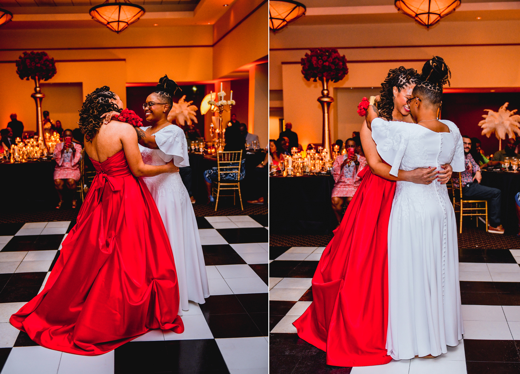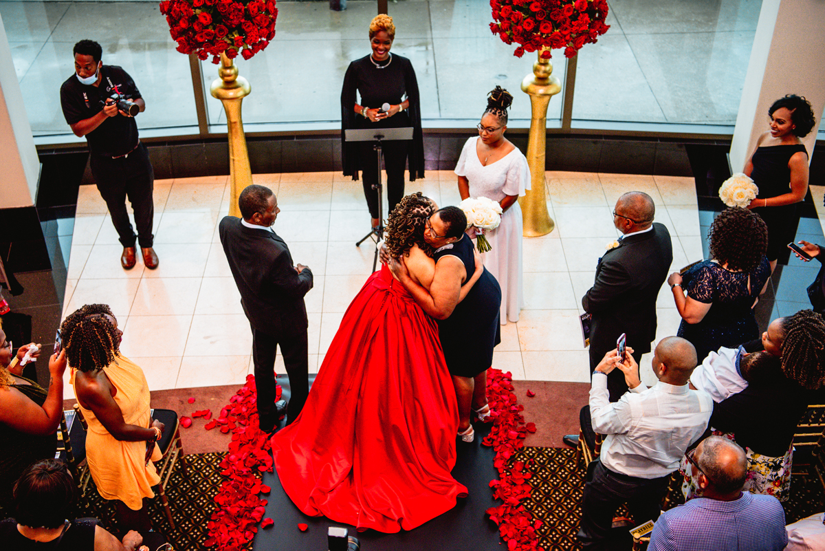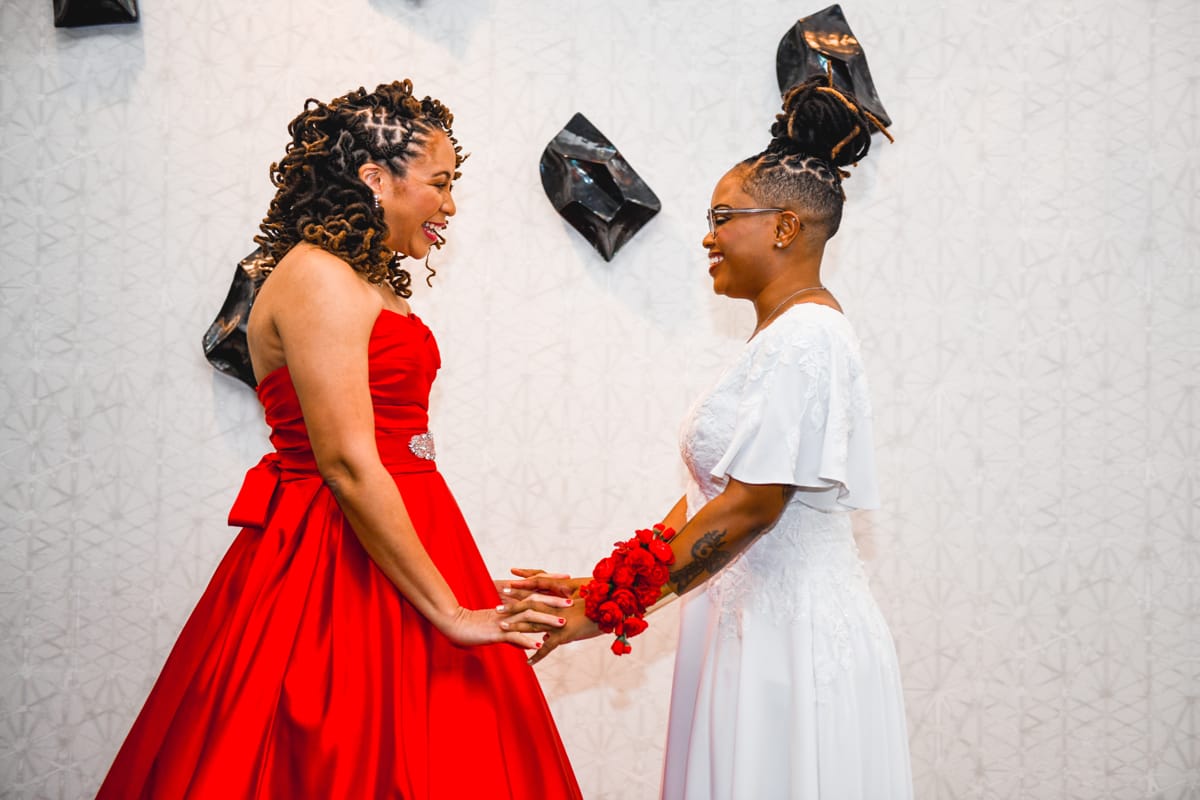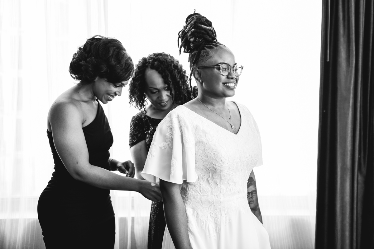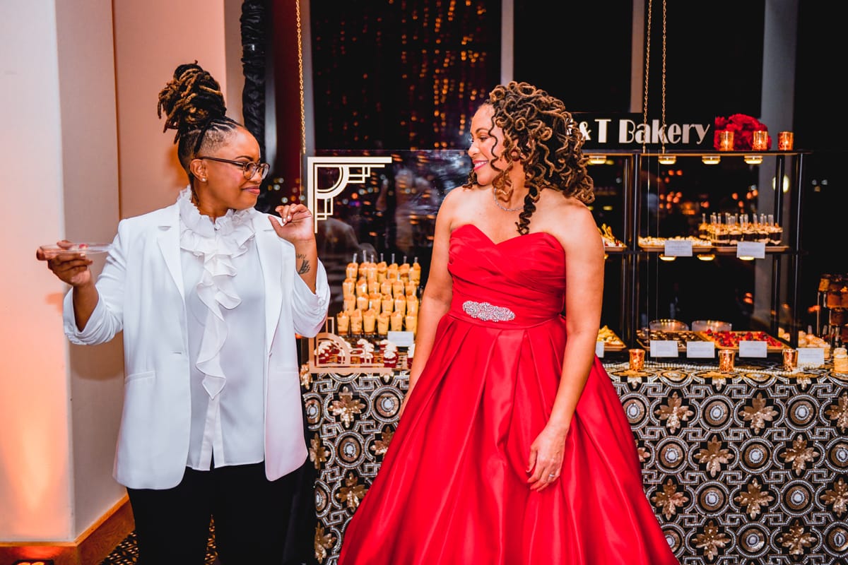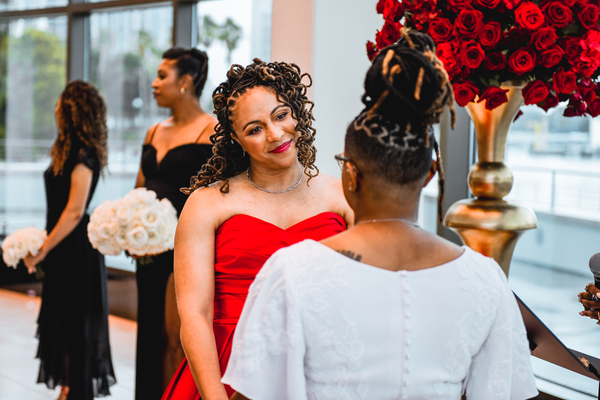 I first met Tiffiny and Jordyn at their Ybor engagement session and knew right off the bat their Mahaffey Theater wedding day was going to be epic. That was an understatement to say the least. Combining forces with Staci of UNIQUE Weddings and Events, the brain child that was Tiffiny and Jordyn’s wedding vision was executed flawlessly and is probably one of the most beautiful weddings I’ve photographed to date. Peep the reception detail shots to see what I’m talking about, but I’ll start back at the beginning. I spent the morning with Tiffiny and Jordyn as they both got ready together until they went in separate rooms to get dressed prior to their first look. I loved that they got to share their wedding morning together but still kept the tradition of waiting to see each other in their wedding dresses until their first look. After their first look in the hotel we migrated across the street to the Mahaffey Theater and took some show stopping portraits on the theater stage as we waited for guests to arrive for the ceremony. Perks of having a Mahaffey Theater wedding! The ceremony took place in front east facing windows looking out towards the bay and all the sailboats in the harbor. An afternoon thunderstorm had rolled in so the added dramatics of a lightning striking all around was a big hit with the guests. After a surprise musical guest during the vows and the rings were exchanged, Tiffiny and Jordyn became wife and wife and danced all the way back down the aisle. The rest of the evening was filled with a stunning custom dessert station, dinner, drinks and lots of dancing. Congrats Tiffiny and Jordyn, I’m so happy I got to capture this day for you!