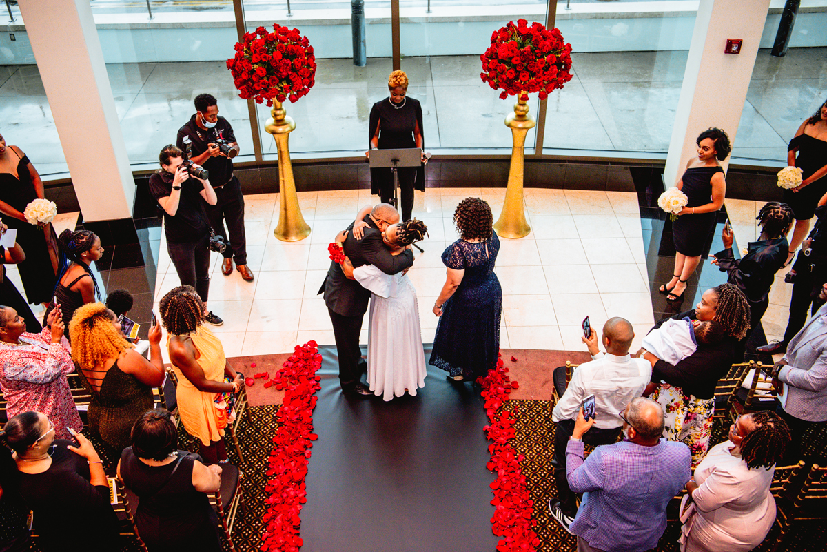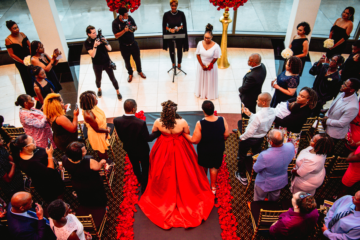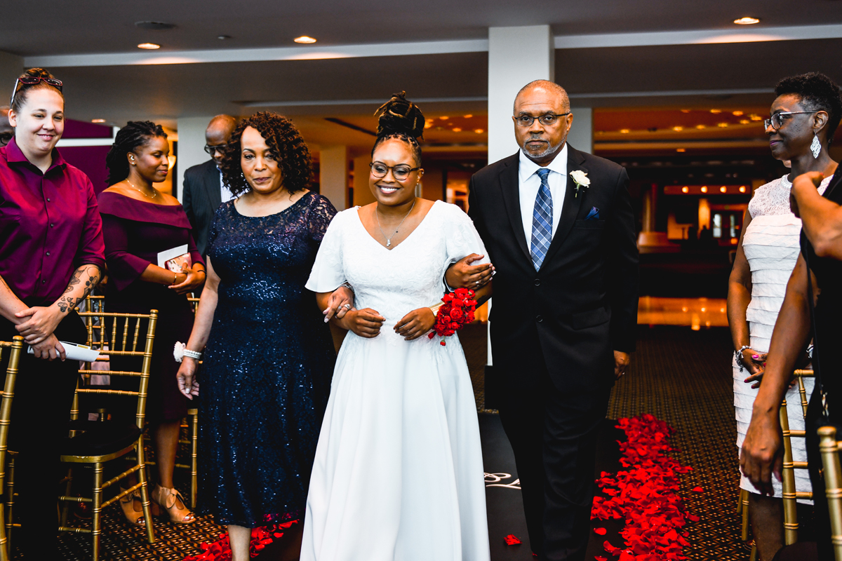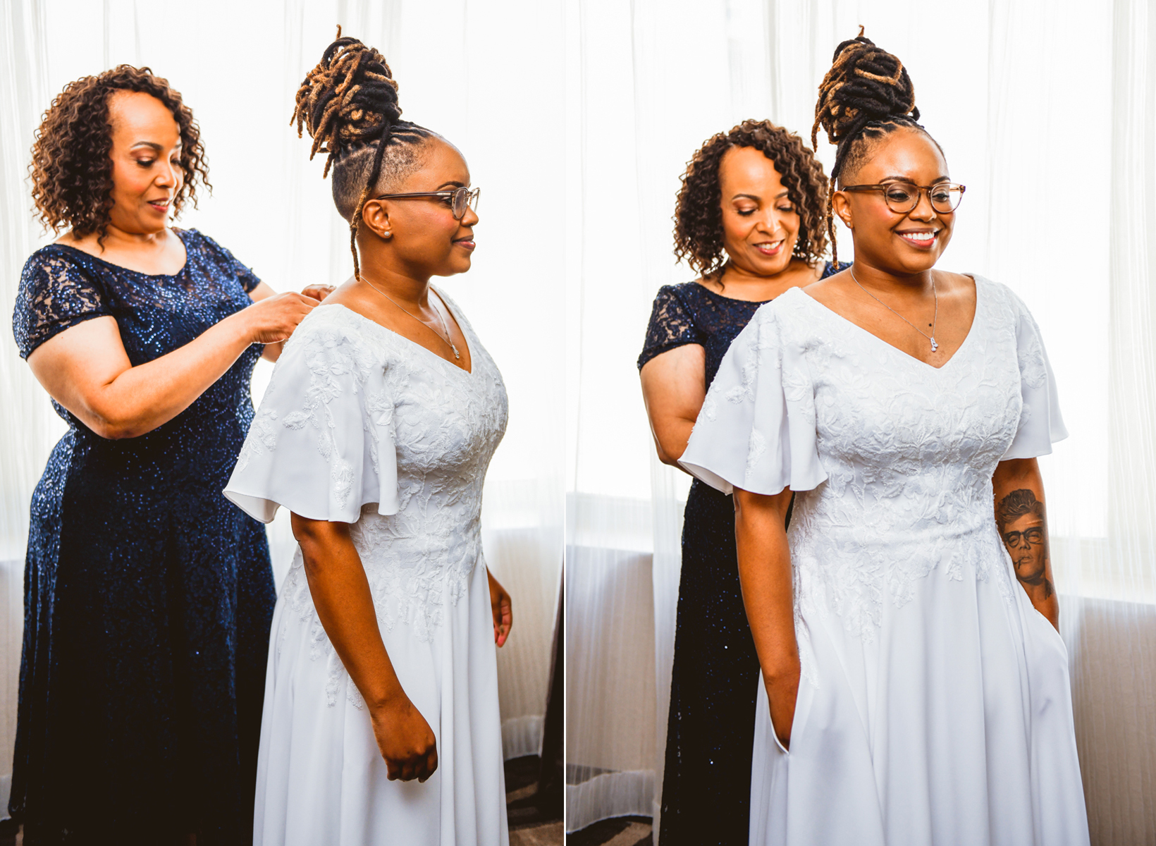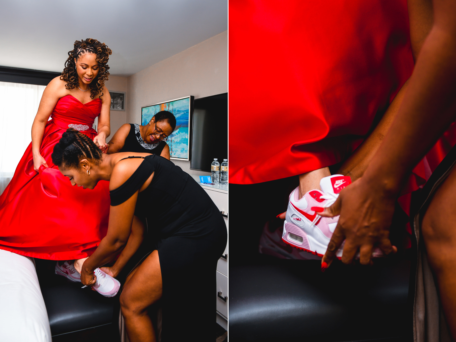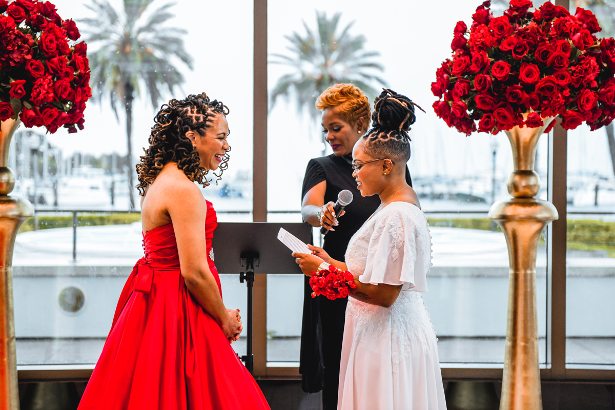 I first met Tiffiny and Jordyn at their Ybor engagement session and knew right off the bat their Mahaffey Theater wedding day was going to be epic. That was an understatement to say the least. Combining forces with Staci of UNIQUE Weddings and Events, the brain child that was Tiffiny and Jordyn’s wedding vision was executed flawlessly and is probably one of the most beautiful weddings I’ve photographed to date. Peep the reception detail shots to see what I’m talking about, but I’ll start back at the beginning. I spent the morning with Tiffiny and Jordyn as they both got ready together until they went in separate rooms to get dressed prior to their first look. I loved that they got to share their wedding morning together but still kept the tradition of waiting to see each other in their wedding dresses until their first look. After their first look in the hotel we migrated across the street to the Mahaffey Theater and took some show stopping portraits on the theater stage as we waited for guests to arrive for the ceremony. Perks of having a Mahaffey Theater wedding! The ceremony took place in front east facing windows looking out towards the bay and all the sailboats in the harbor. An afternoon thunderstorm had rolled in so the added dramatics of a lightning striking all around was a big hit with the guests. After a surprise musical guest during the vows and the rings were exchanged, Tiffiny and Jordyn became wife and wife and danced all the way back down the aisle. The rest of the evening was filled with a stunning custom dessert station, dinner, drinks and lots of dancing. Congrats Tiffiny and Jordyn, I’m so happy I got to capture this day for you!