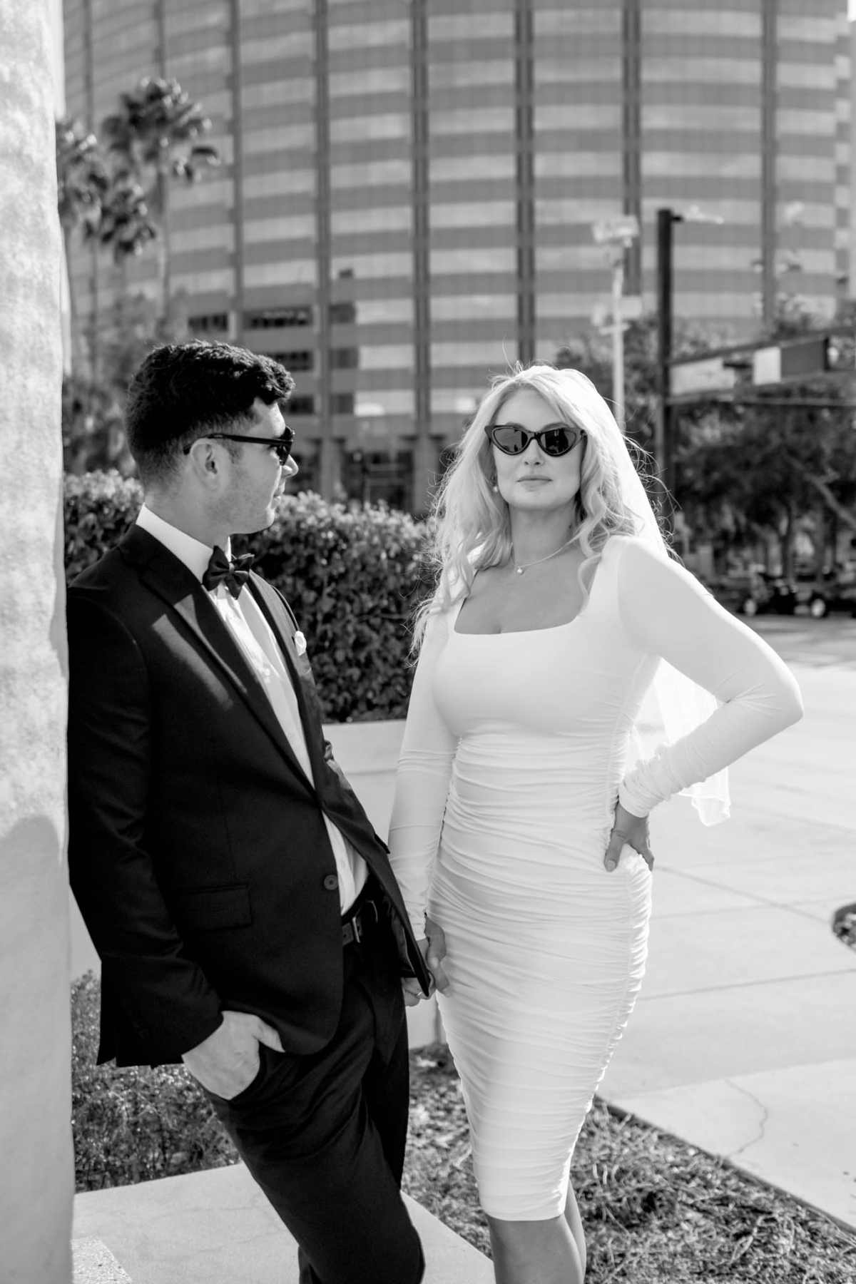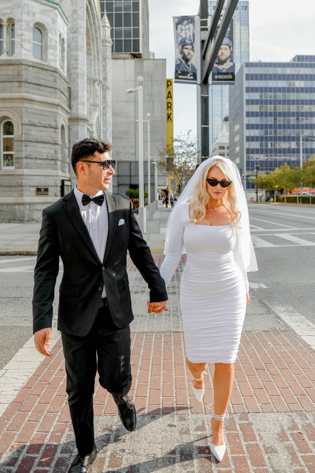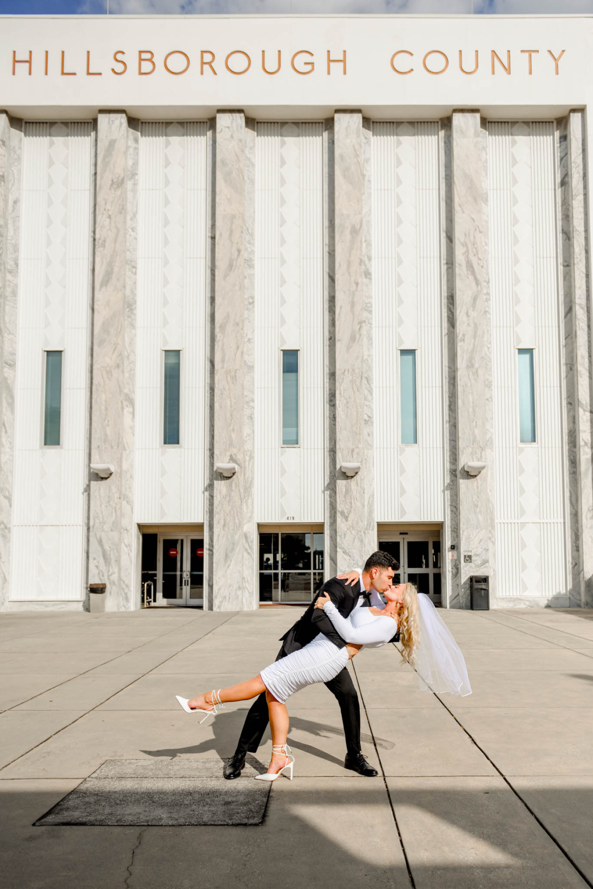 - There was nothing spooky about Elizabeth and Steven’s Friday the 13th Elopement at Hillsborough County Courthouse. Although Friday the 13th is considered an unlucky day in Western superstition, in the Gregorian it happens at least once every year but can occur up to three times in the same year. The history behind why Friday the 13th gets a bad reputation is actually pretty interesting if you want to brush up on that saga. But more importantly for the Swifties, which Elizabeth and Steven are, Taylor Swift’s lucky number is 13 and that’s the only rebrand that number will ever need. Okay back to Elizabeth and Steven’s Elopement at Hillsborough County Courthouse. We walked into the courthouse together to check in and wait our turn to be called to the window. You might be surprised to know that Friday the 13th is one of the most popular wedding days and that rang true for this day too! There was a waiting room full of brides and grooms dressed in black for the occasion all waiting for their number to be called. Once we were called to the window, the formalities of getting married were taken care of before heading to the private room for the ceremony. Rings were exchanged, “I dos” were said and Elizabeth and Steven officially became Mr. & Mrs. Parra! Our first order of business was stopping at the car for a celebratory shot of tequila which Steven and Elizabeth had on their first date together. We love a callback! The rest of the day was spent galavanting around downtown for their portraits. We got really lucky with the weather and had a mostly overcast day which is perfect for photos, especially in the middle of the day. Congrats Elizabeth and Steven ! I loved capturing your Friday the 13th Elopement at Hillsborough County Courthouse!